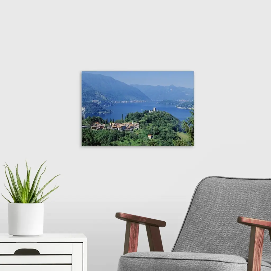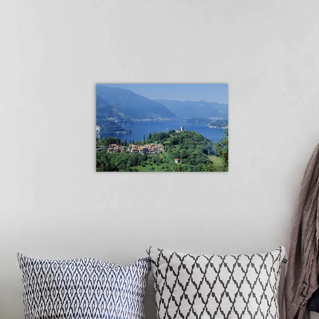 Italy, Lombardy, Como Lake, View towards Varenna wall art for home and office decor. Discover canvas art prints, photos, mural, big canvas art and framed wall art in GreatBigCanvas.com's varied collections.