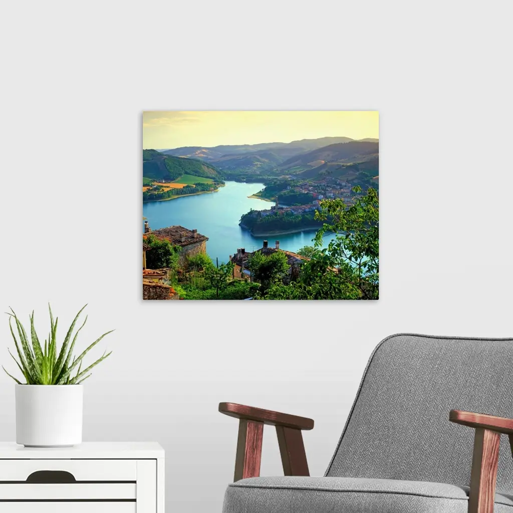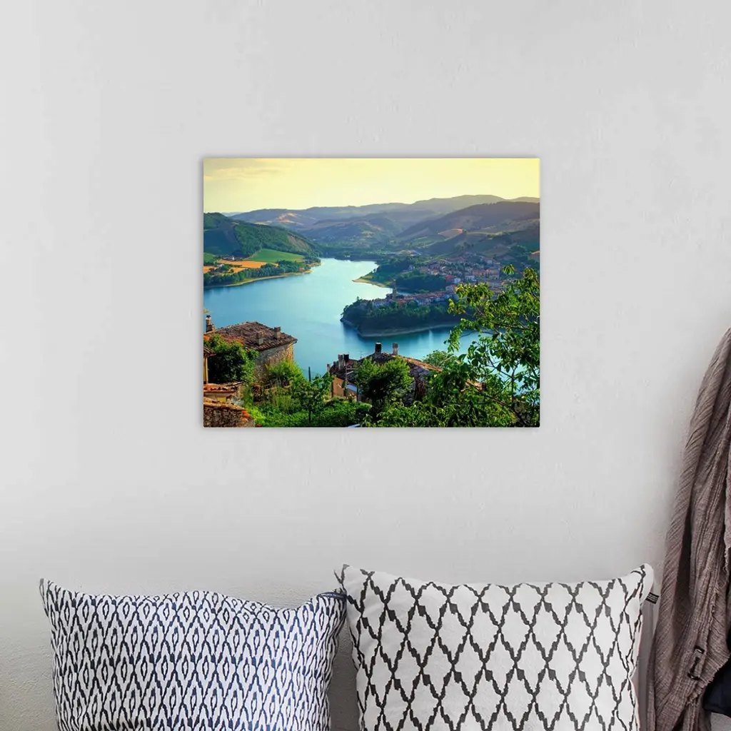 Italy, Marche, Mercatale lake, view from Sassocorvaro village wall art for home and office decor. Discover canvas art prints, photos, mural, big canvas art and framed wall art in GreatBigCanvas.com's varied collections.