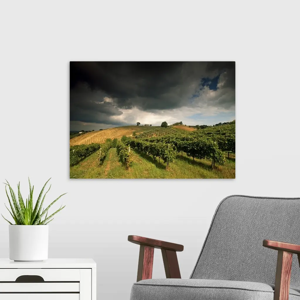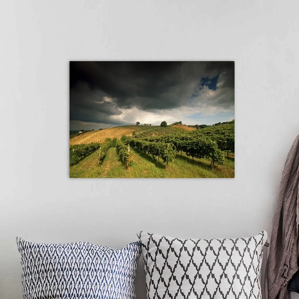 Italy, Marches, Castelplanio, Vineyards near Castelplanio wall art for home and office decor. Discover canvas art prints, photos, mural, big canvas art and framed wall art in GreatBigCanvas.com's varied collections.