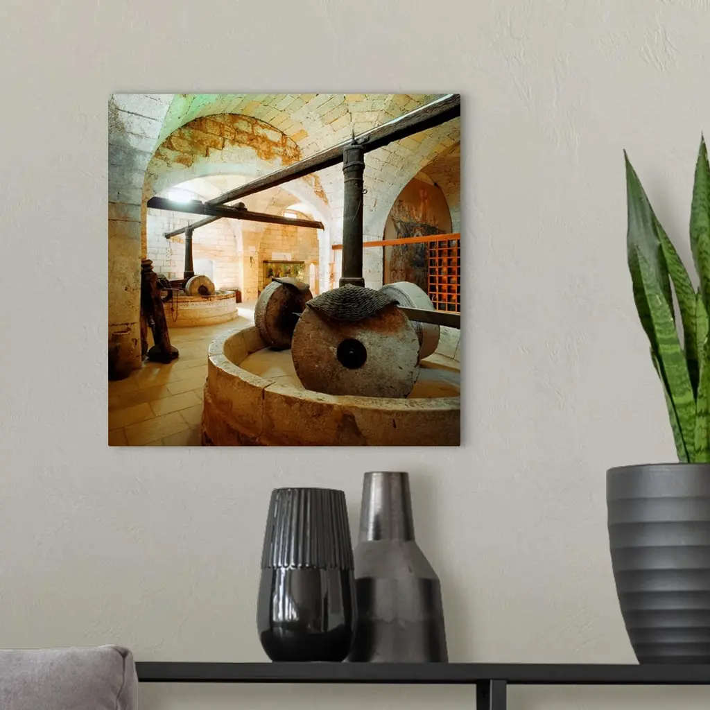 Italy, Puglia, Santa Maria di Cerrate abbey, oil press wall art for home and office decor. Discover canvas art prints, photos, mural, big canvas art and framed wall art in GreatBigCanvas.com's varied collections.