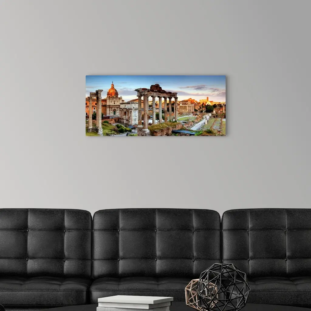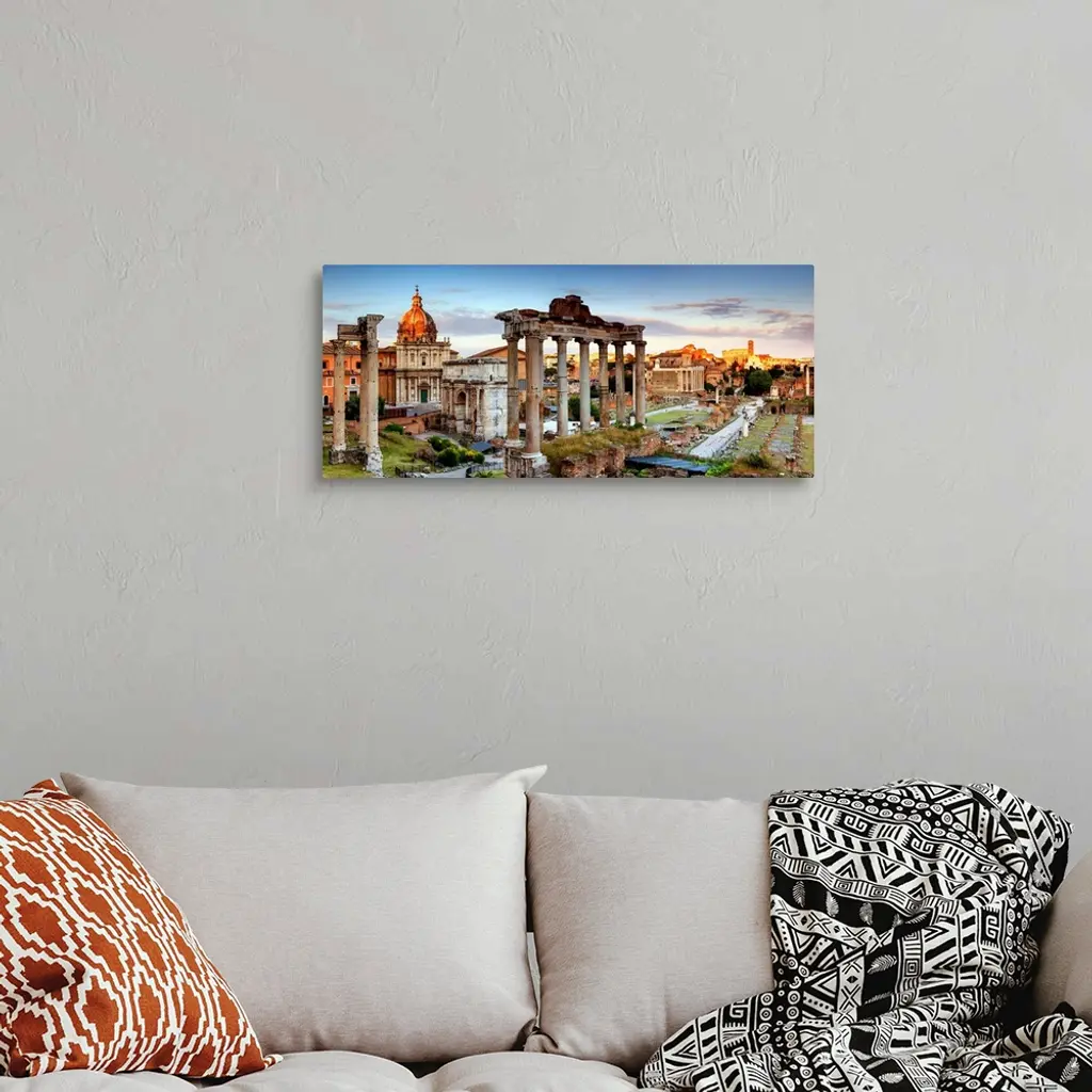 Italy, Rome, Colosseum and Roman Forum at sunset