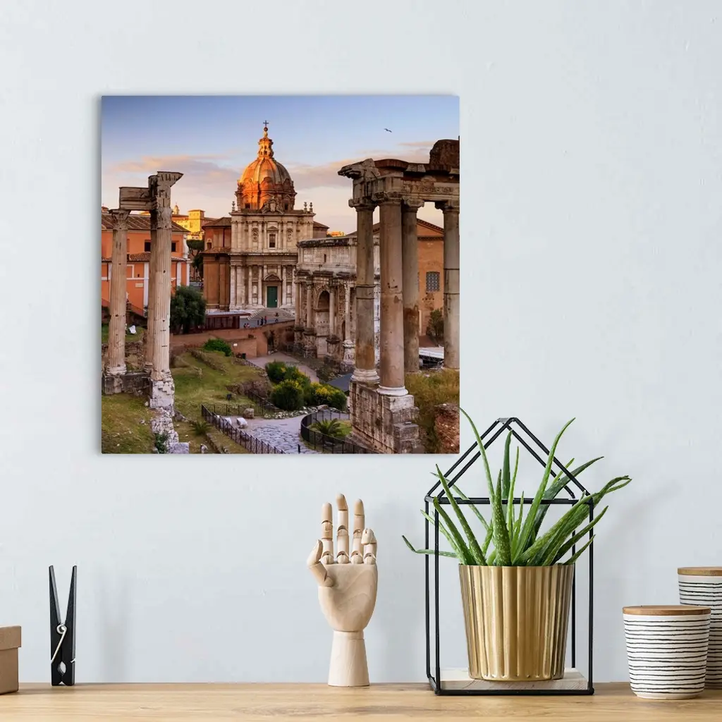 Italy, Rome, Colosseum and Roman Forum at sunset