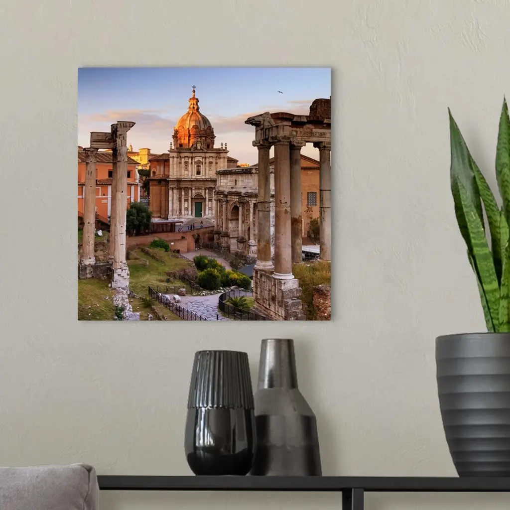 Italy, Rome, Colosseum And Roman Forum At Sunset