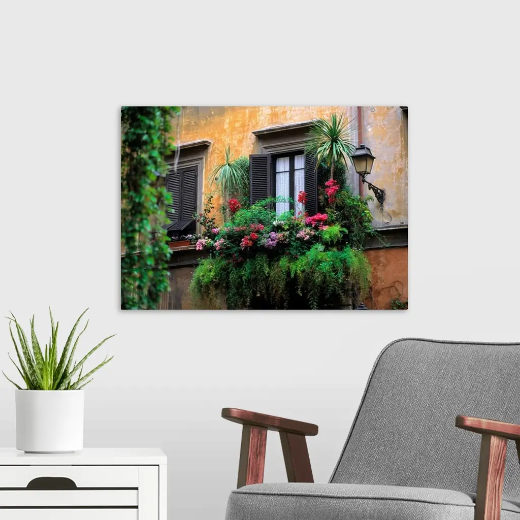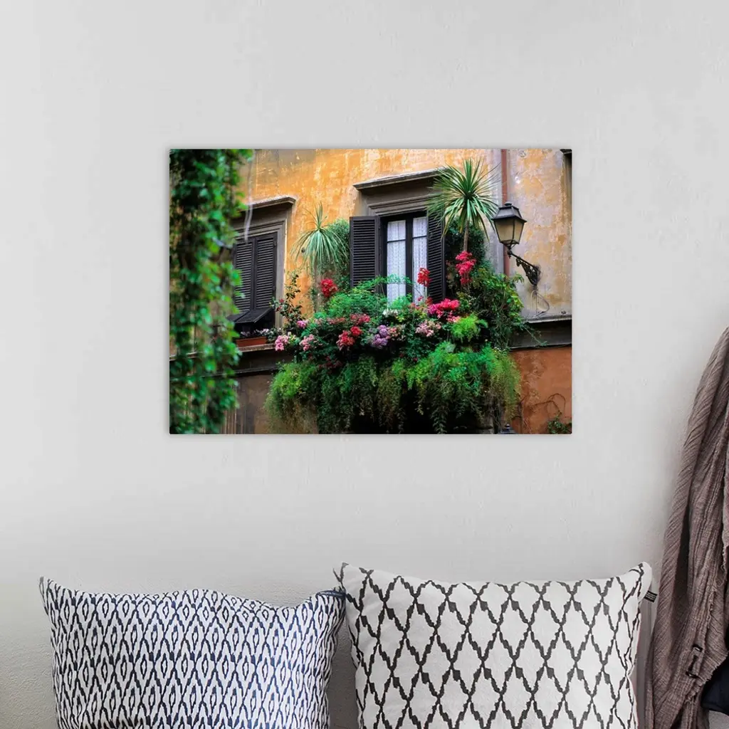 Italy, Rome, Historical Center, typical window with flowers wall art for home and office decor. Discover canvas art prints, photos, mural, big canvas art and framed wall art in GreatBigCanvas.com's varied collections.