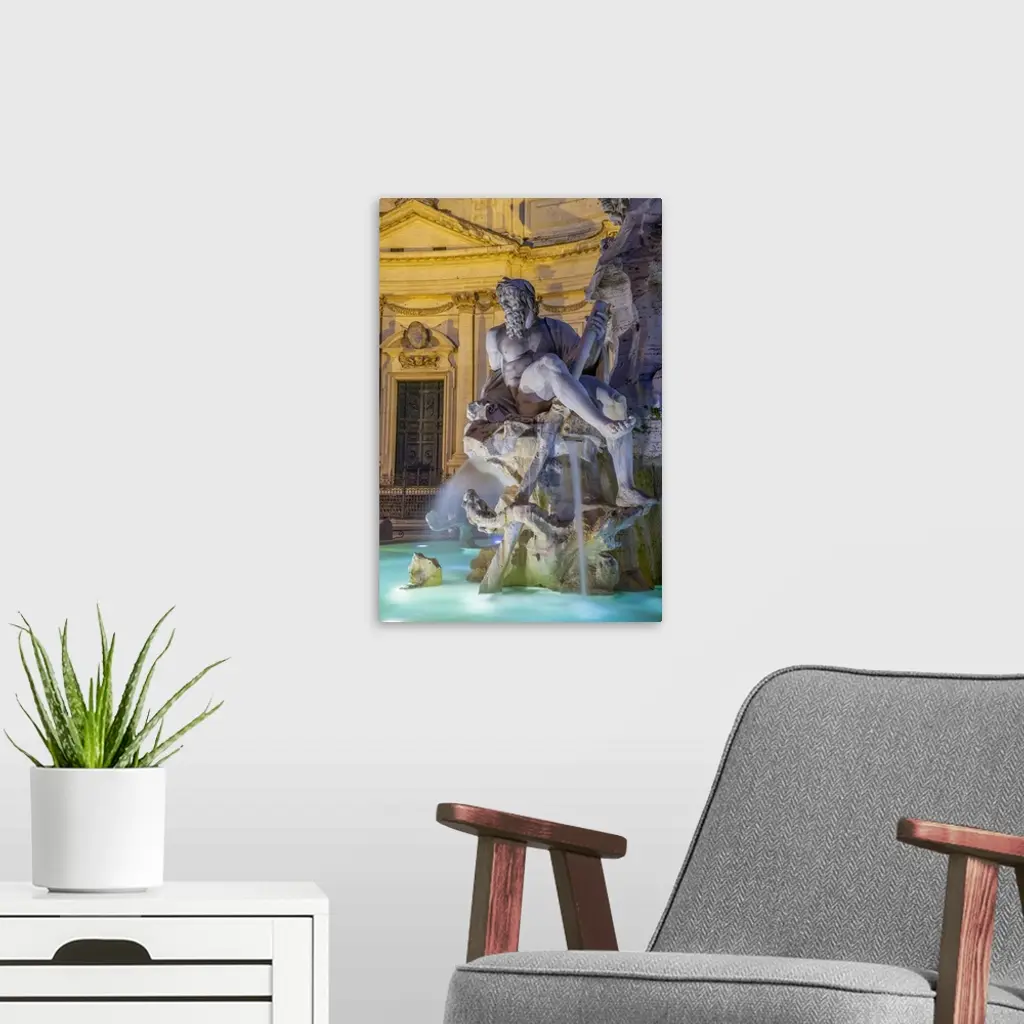 Italy, Rome, Piazza Navona, Fontana Dei Quattro Fiumi, River God Ganges