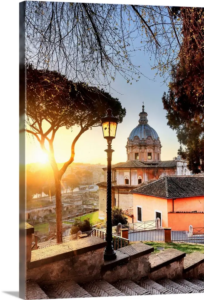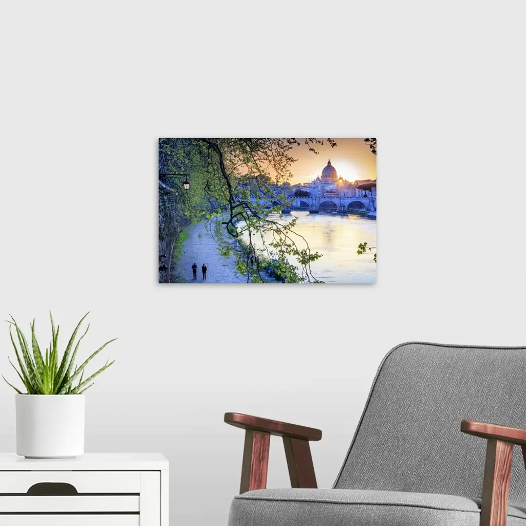 Italy, Rome, St. Peter Basilica At Sunset Reflecting On Tevere River