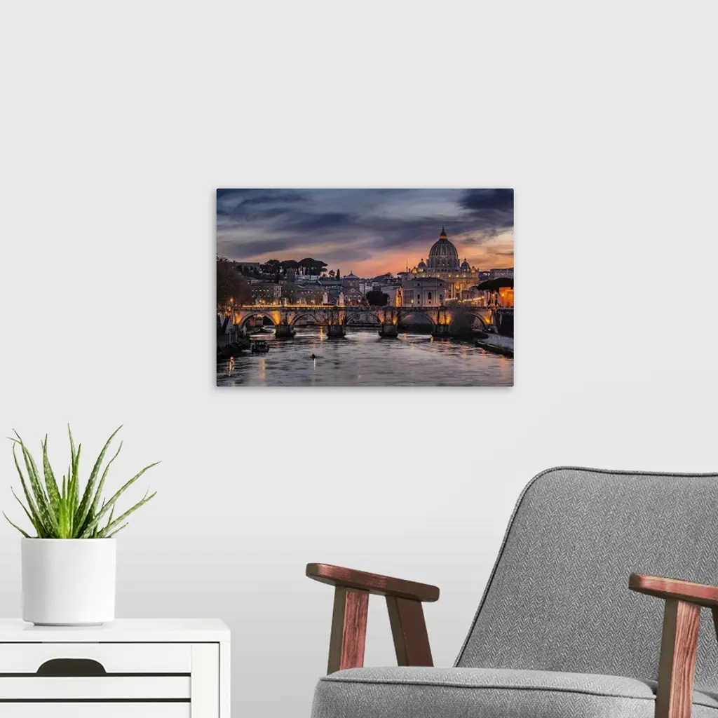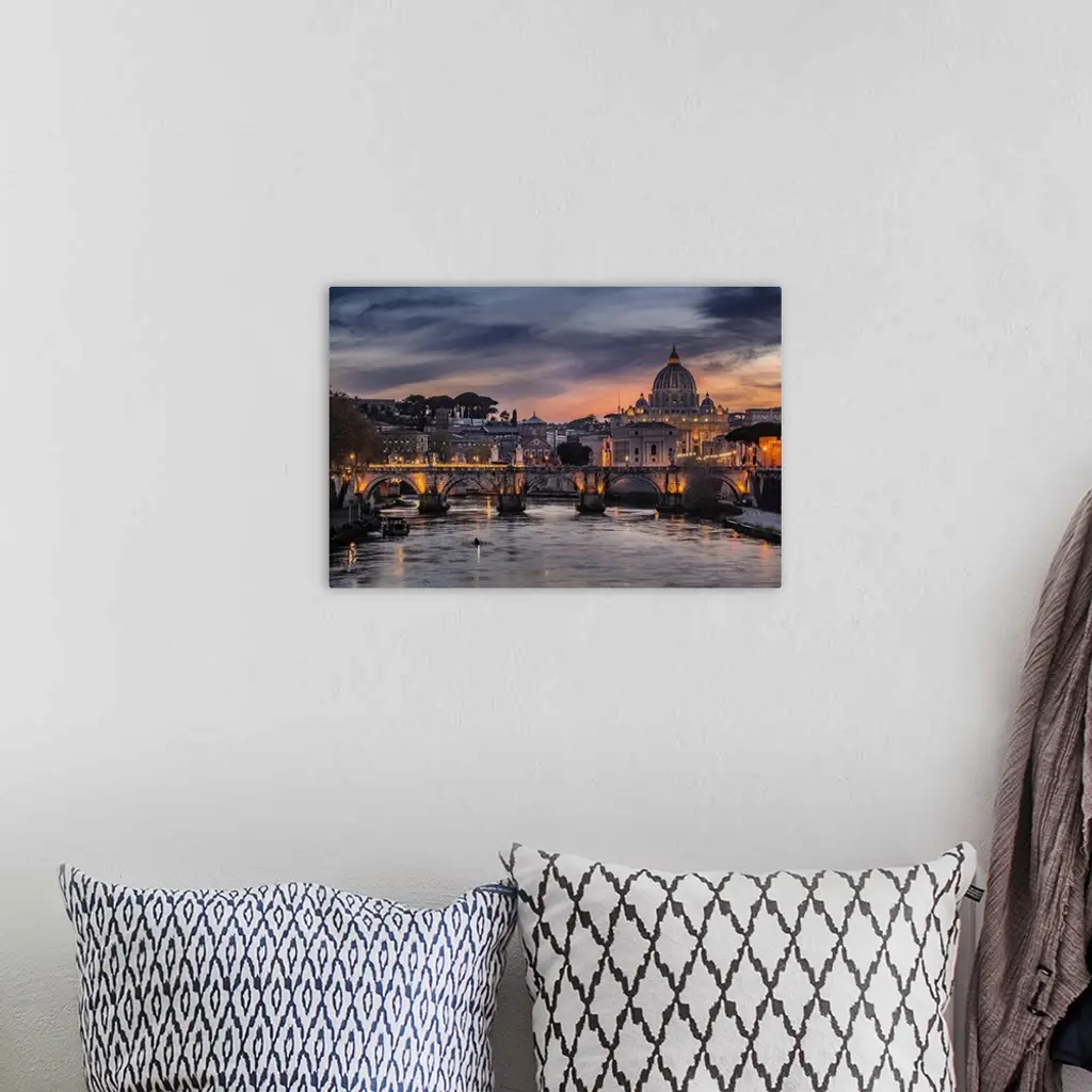 Italy, Rome, St Peter's Basilica And Ponte Sant'angelo On The Tiber River