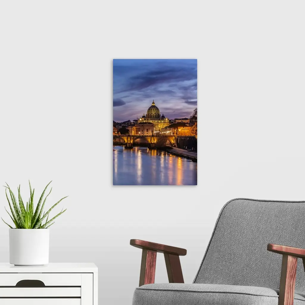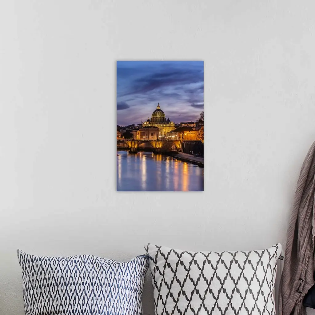 Italy, Rome, St. Peter's Basilica, Basilica And Ponte Sant'angelo On The Tiber River