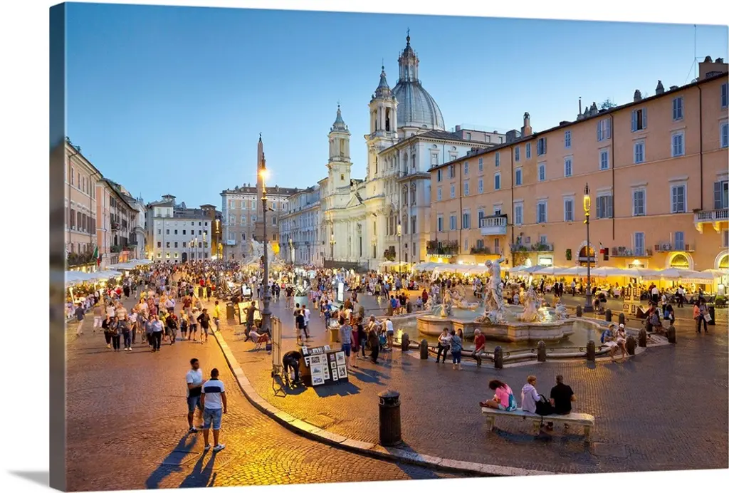 Italy, Rome, Trastevere, Piazza Santa Maria in Trastevere wall art for home and office decor. Discover canvas art prints, photos, mural, big canvas art and framed wall art in GreatBigCanvas.com's varied collections.