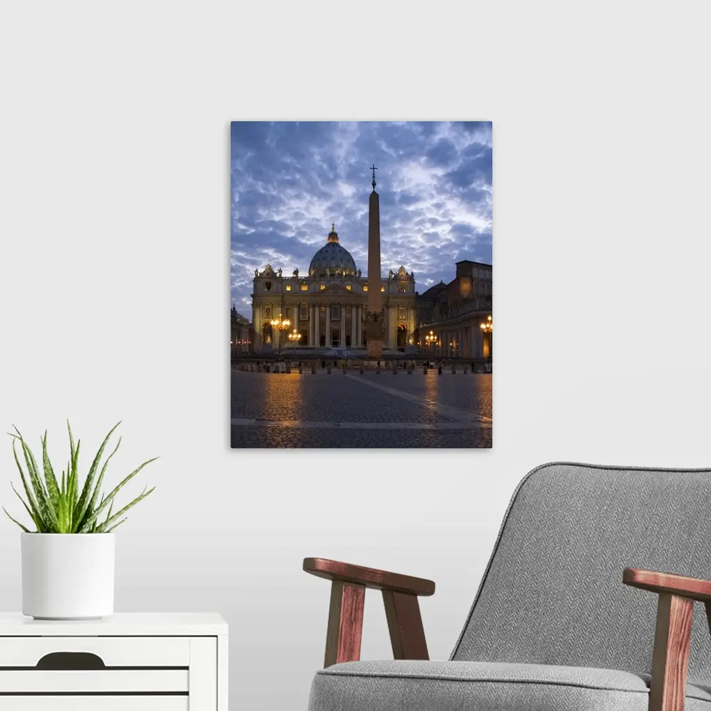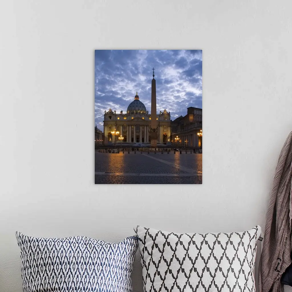 Italy, Rome, Vatican City, St. Peter's Basilica Illuminated At Dusk