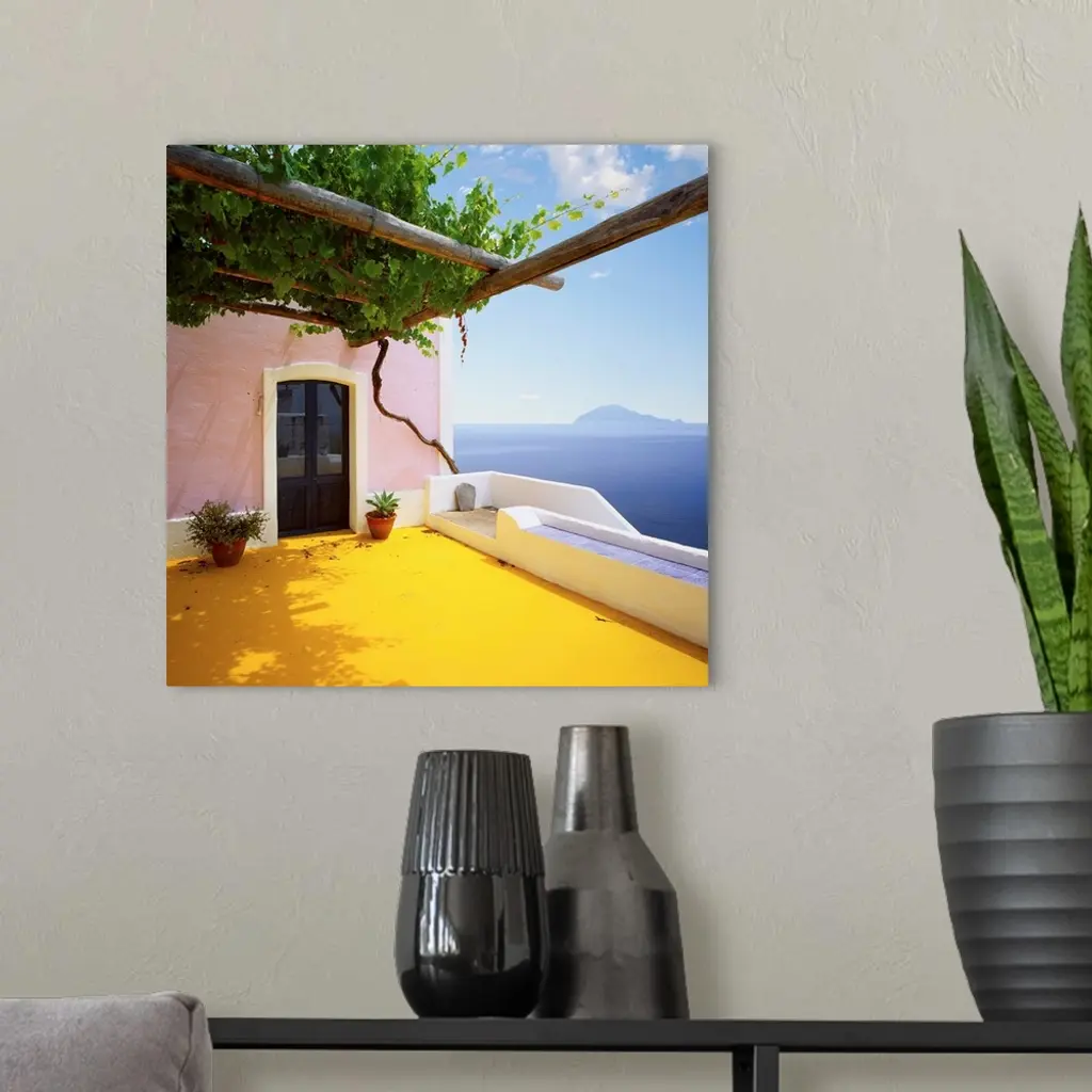 Italy, Sicily, Alicudi island, typical architecture and Filicudi island in background wall art for home and office decor. Discover canvas art prints, photos, mural, big canvas art and framed wall art in GreatBigCanvas.com's varied collections.