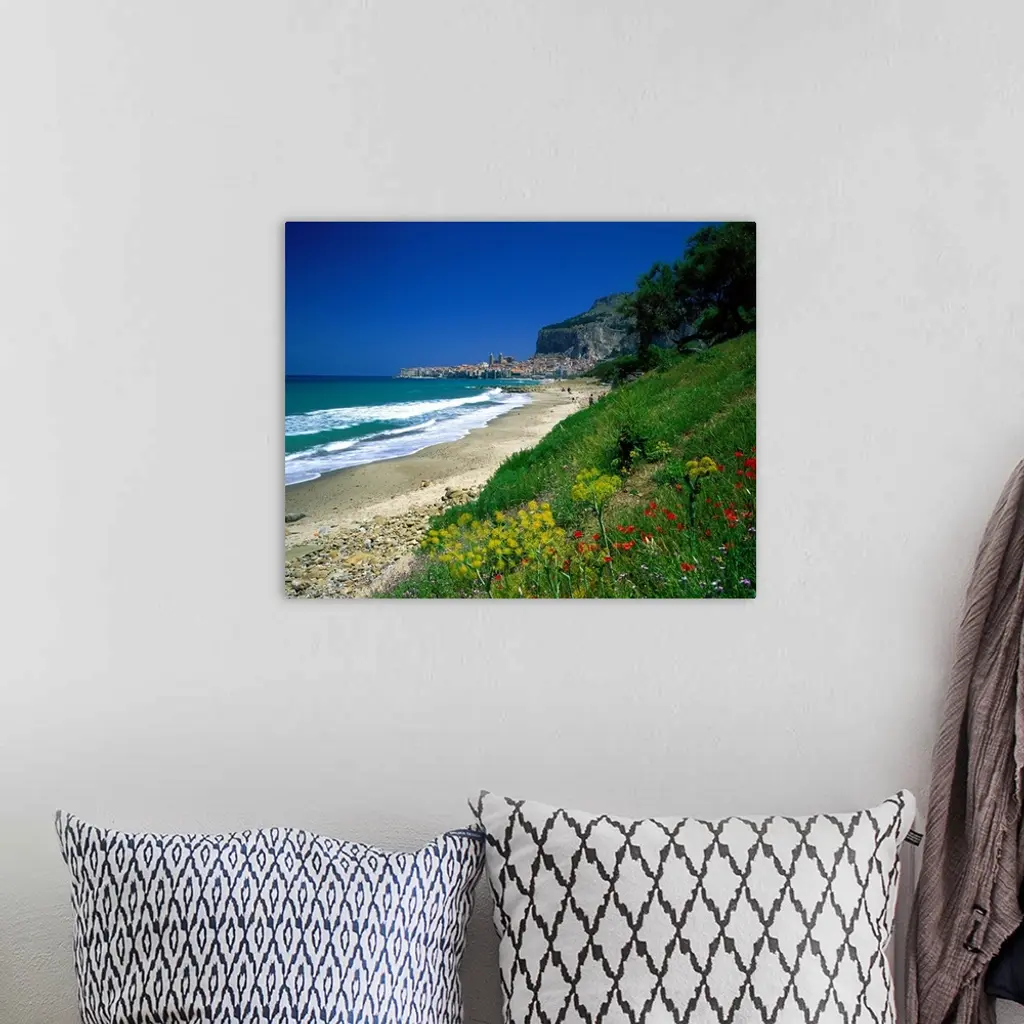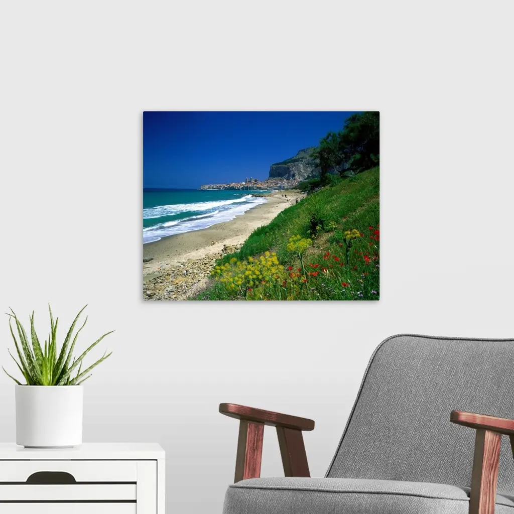 Italy, Sicily, Cefalu, Beach and Cefalu town wall art for home and office decor. Discover canvas art prints, photos, mural, big canvas art and framed wall art in GreatBigCanvas.com's varied collections.
