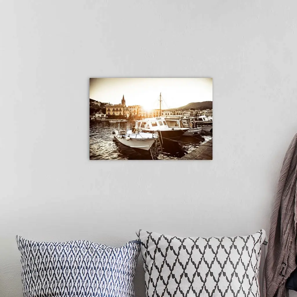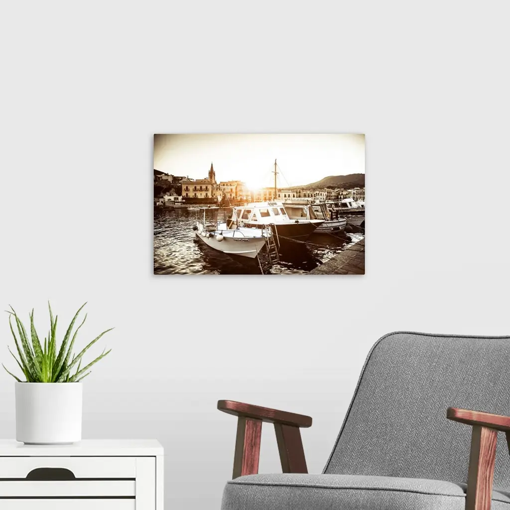 Italy, Sicily, Lipari, Marina Corta At Sunset