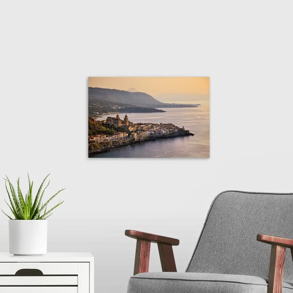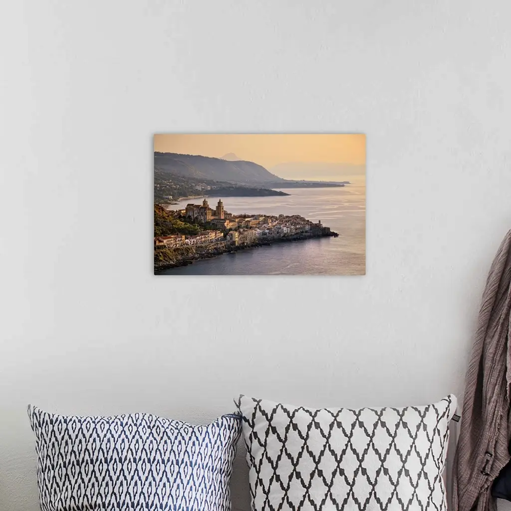 Italy, Sicily, Mediterranean sea, Palermo district, Cefalu, Aerial view wall art for home and office decor. Discover canvas art prints, photos, mural, big canvas art and framed wall art in GreatBigCanvas.com's varied collections.