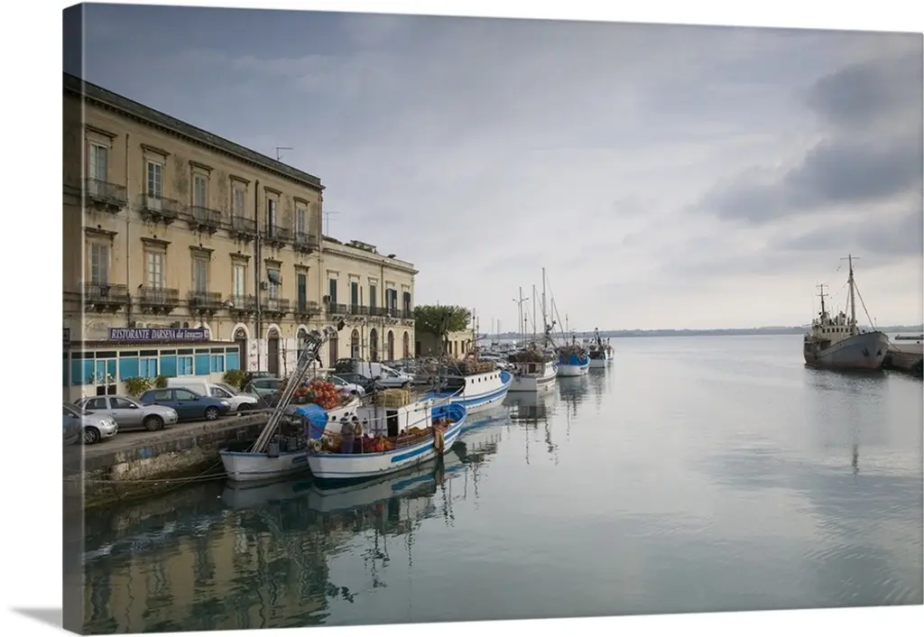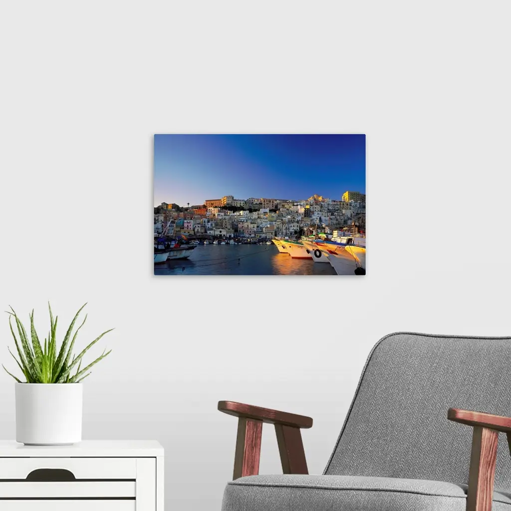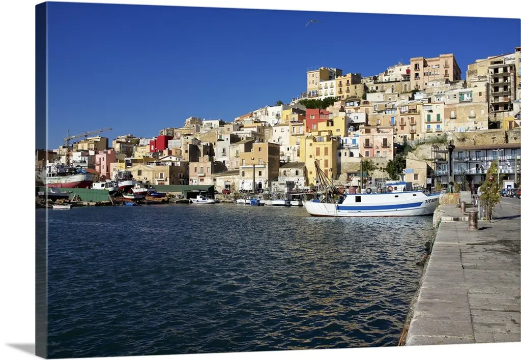 Italy, Sicily, Sciacca, view of harbor wall art for home and office decor. Discover canvas art prints, photos, mural, big canvas art and framed wall art in GreatBigCanvas.com's varied collections.
