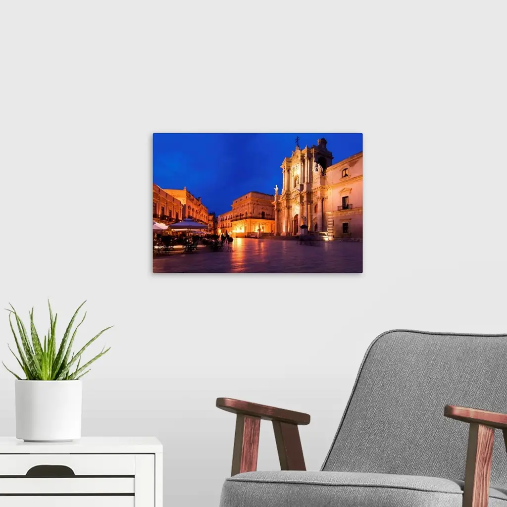 Italy, Sicily, Syracuse, Ortigia, Piazza Duomo And Cathedral