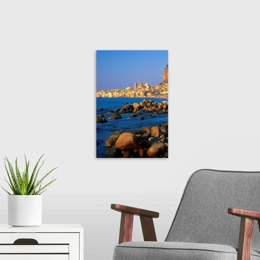 Italy, Sicily, View of Cefalu wall art for home and office decor. Discover canvas art prints, photos, mural, big canvas art and framed wall art in GreatBigCanvas.com's varied collections.