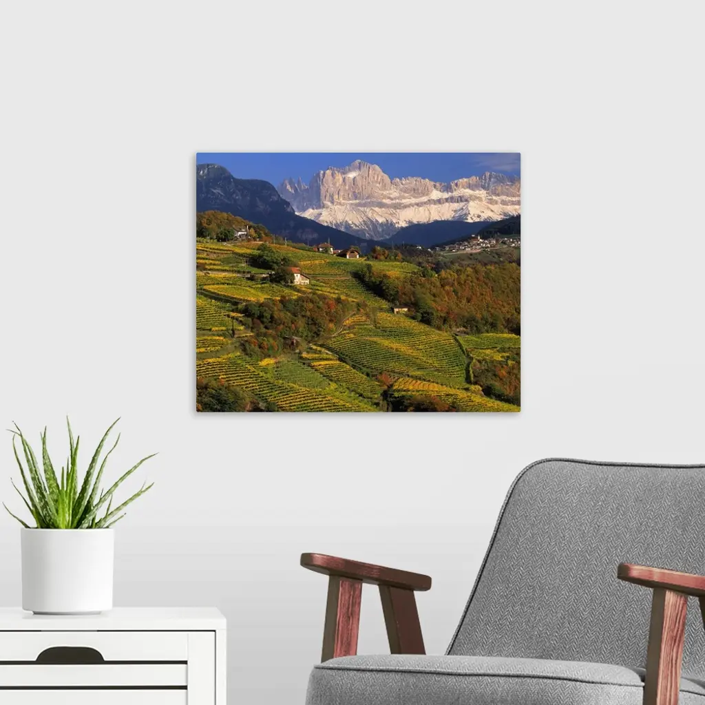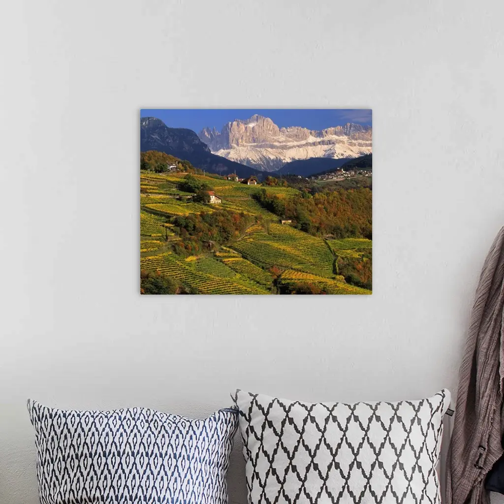 Italy, South Tyrol, Bolzano, Renon (Ritten), vineyard towards Catinaccio wall art for home and office decor. Discover canvas art prints, photos, mural, big canvas art and framed wall art in GreatBigCanvas.com's varied collections.