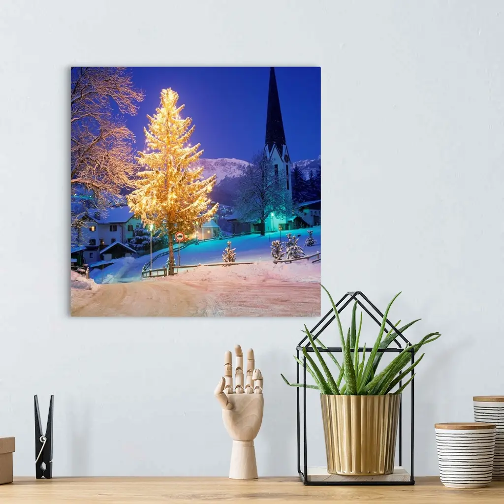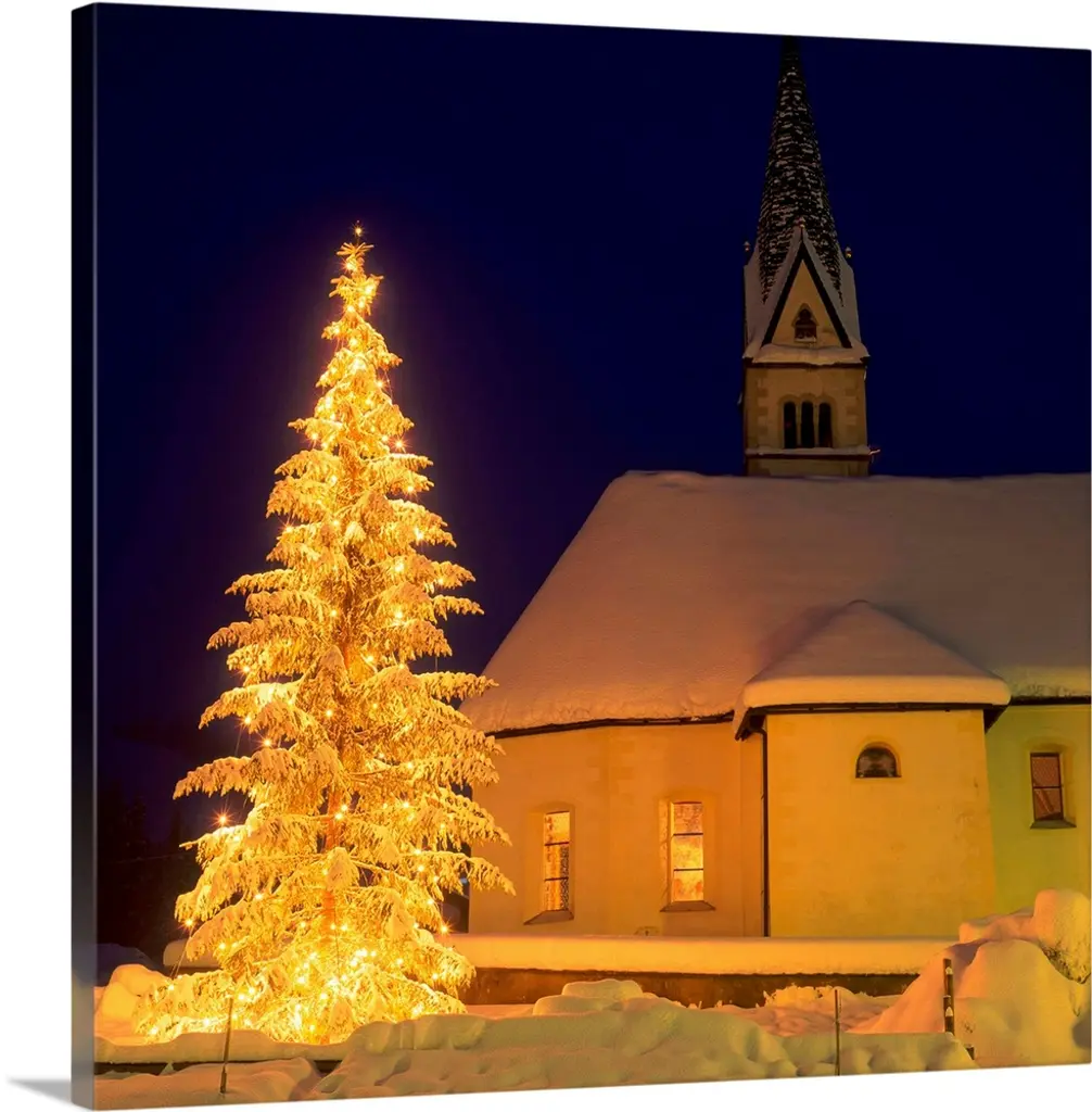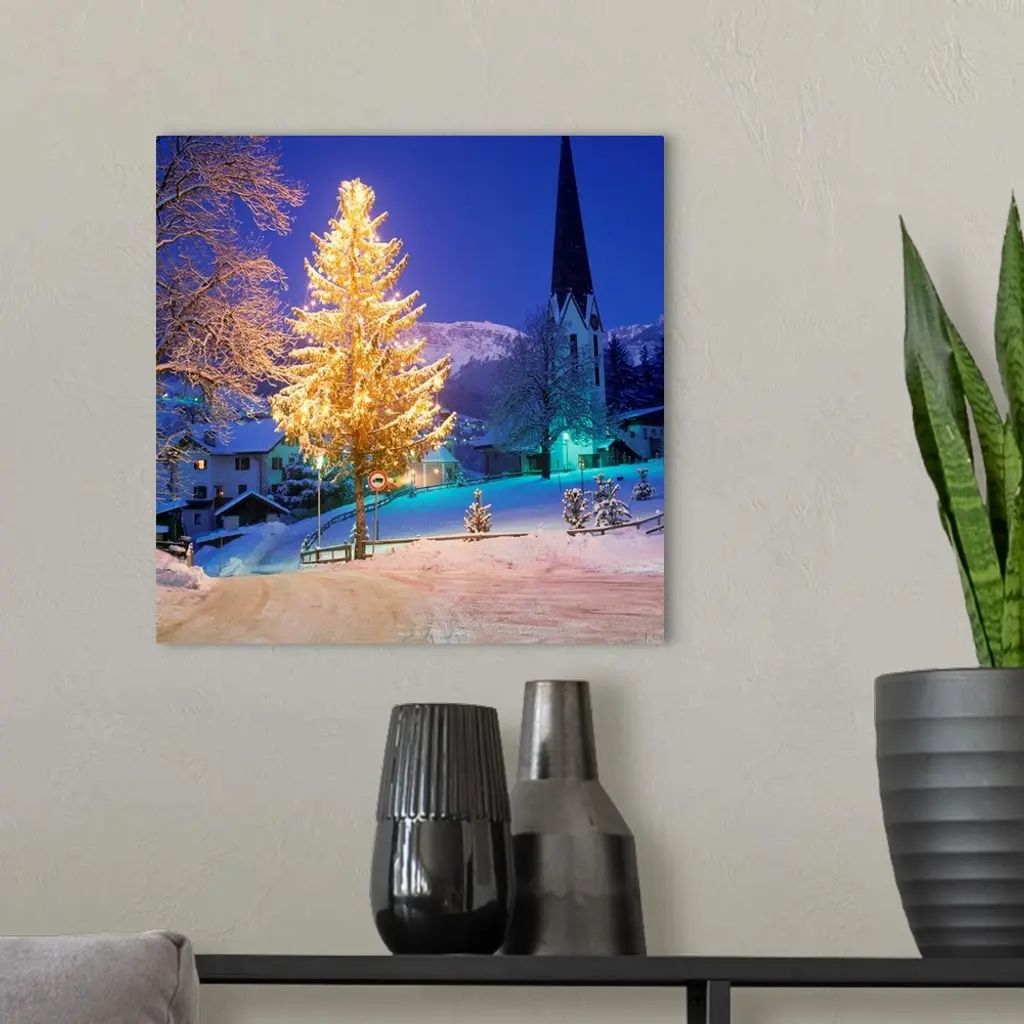 Italy, South Tyrol, Val Gardena, Passua village at Christmas time wall art for home and office decor. Discover canvas art prints, photos, mural, big canvas art and framed wall art in GreatBigCanvas.com's varied collections.
