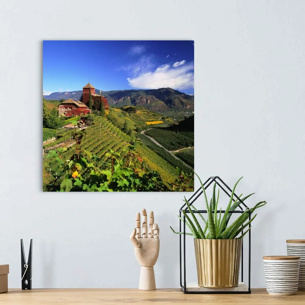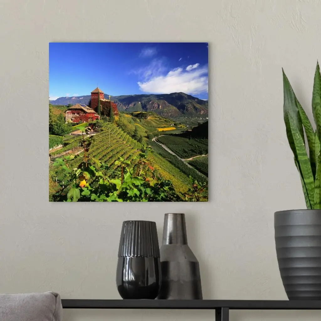 Italy, South Tyrol, wine-road, Warth castle and vineyard towards Bolzano wall art for home and office decor. Discover canvas art prints, photos, mural, big canvas art and framed wall art in GreatBigCanvas.com's varied collections.