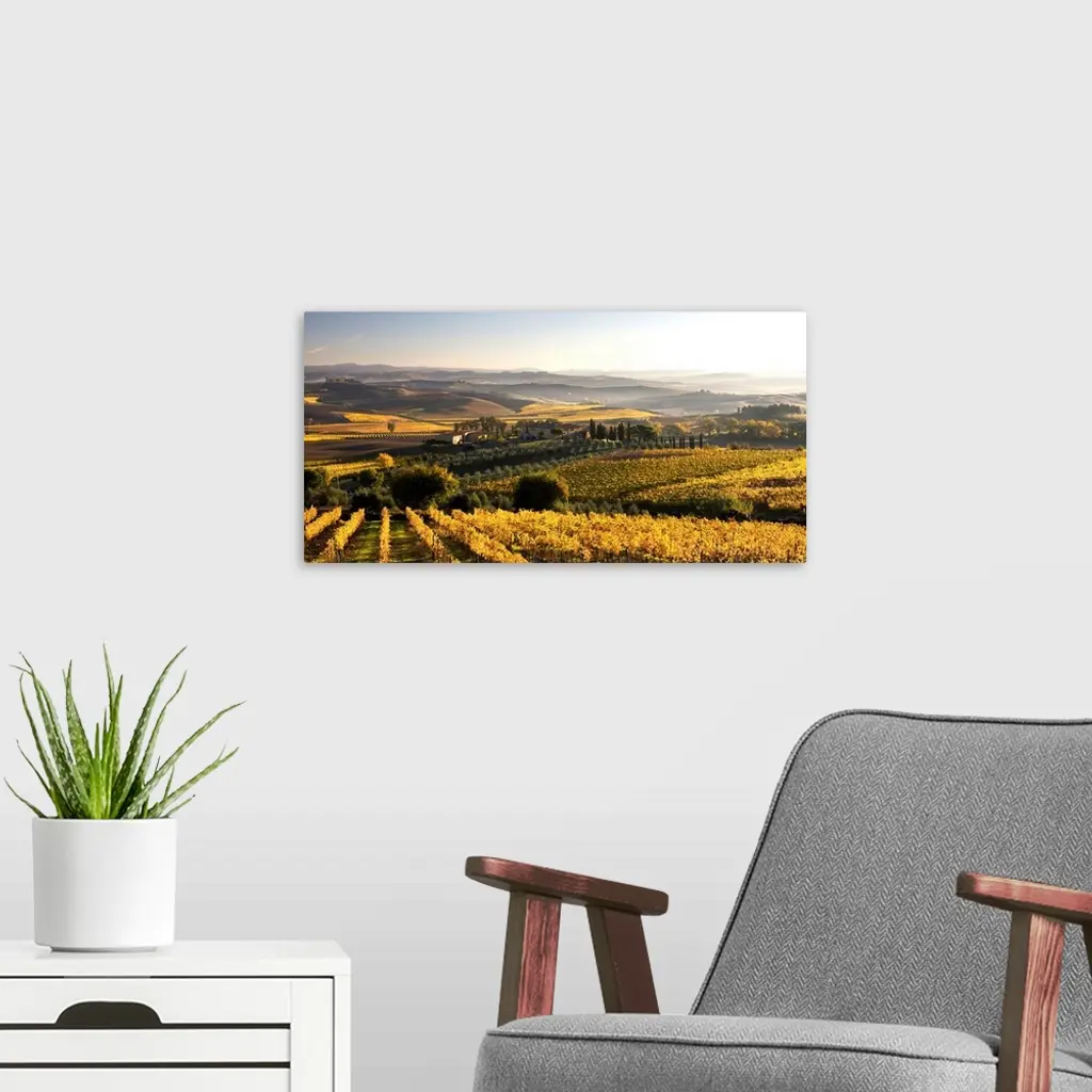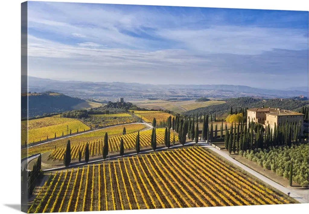Italy, Tuscany, Brunello Wine Road, Orcia Valley, Sangiovese Vineyards Near Montalcino