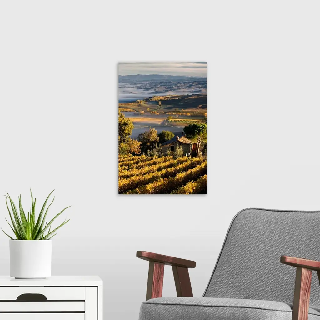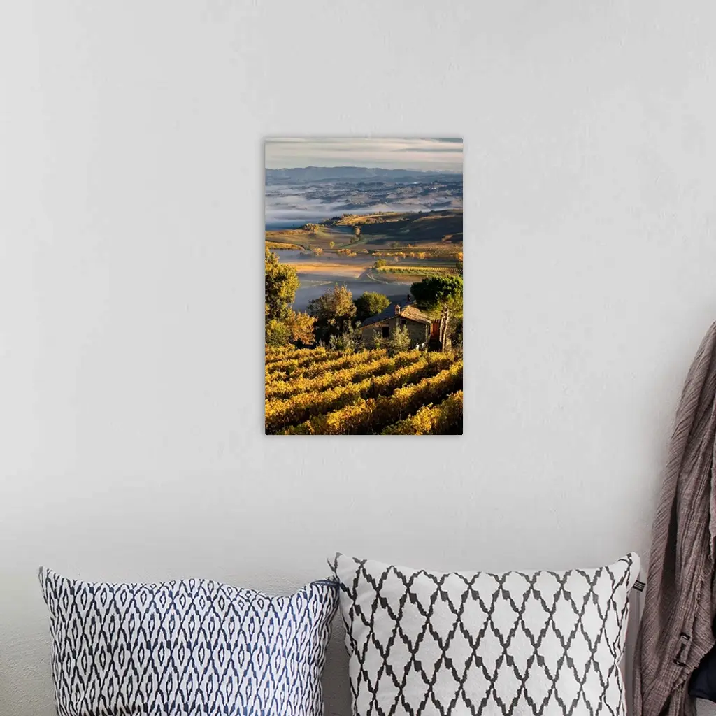 Italy, Tuscany, Brunello Wine Road, Orcia Valley, Sangiovese Vineyards Near Montalcino