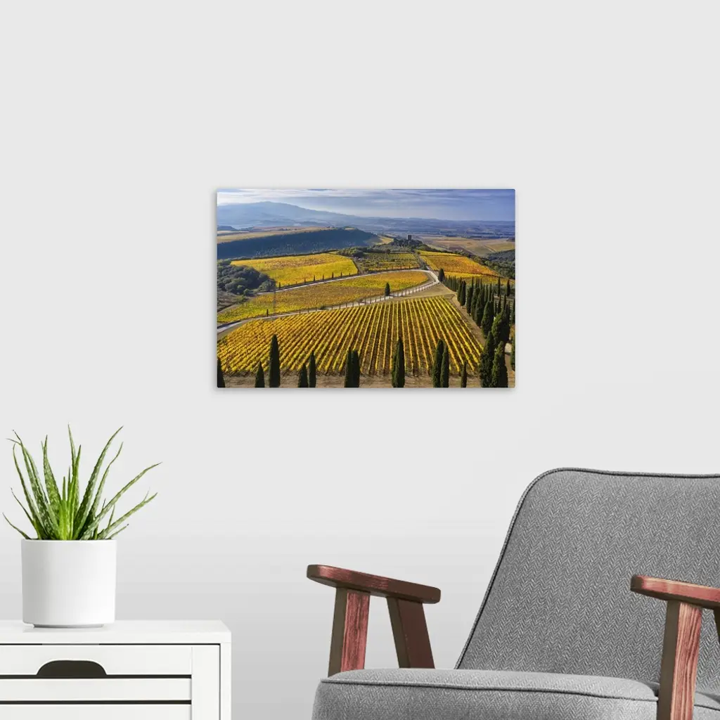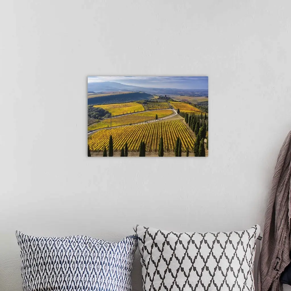 Italy, Tuscany, Brunello Wine Road, Vineyards Of The Podere Di Argiano And The Castle