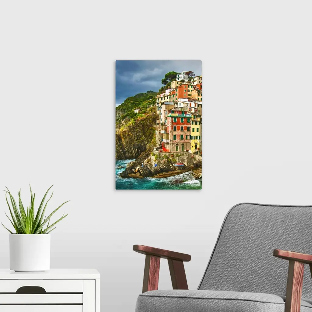 Europe, Italy, Tuscany, Cinque Terre. The stunning shoreline of Riomaggiore in Cinque Terre.