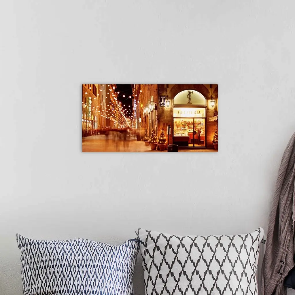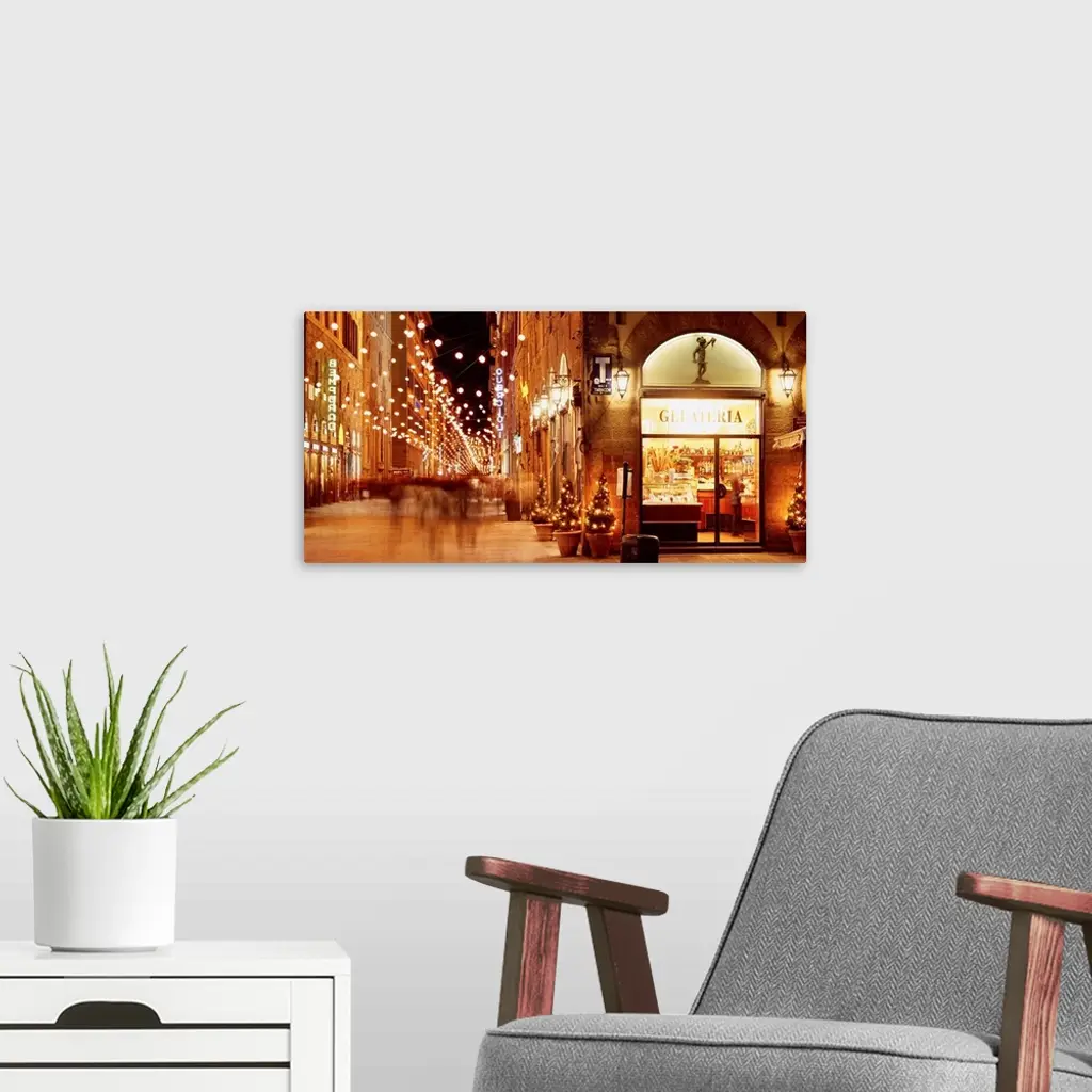 Italy, Tuscany, Florence, Versilia, Via Dei Calzaiuoli, Christmas lights wall art for home and office decor. Discover canvas art prints, photos, mural, big canvas art and framed wall art in GreatBigCanvas.com's varied collections.