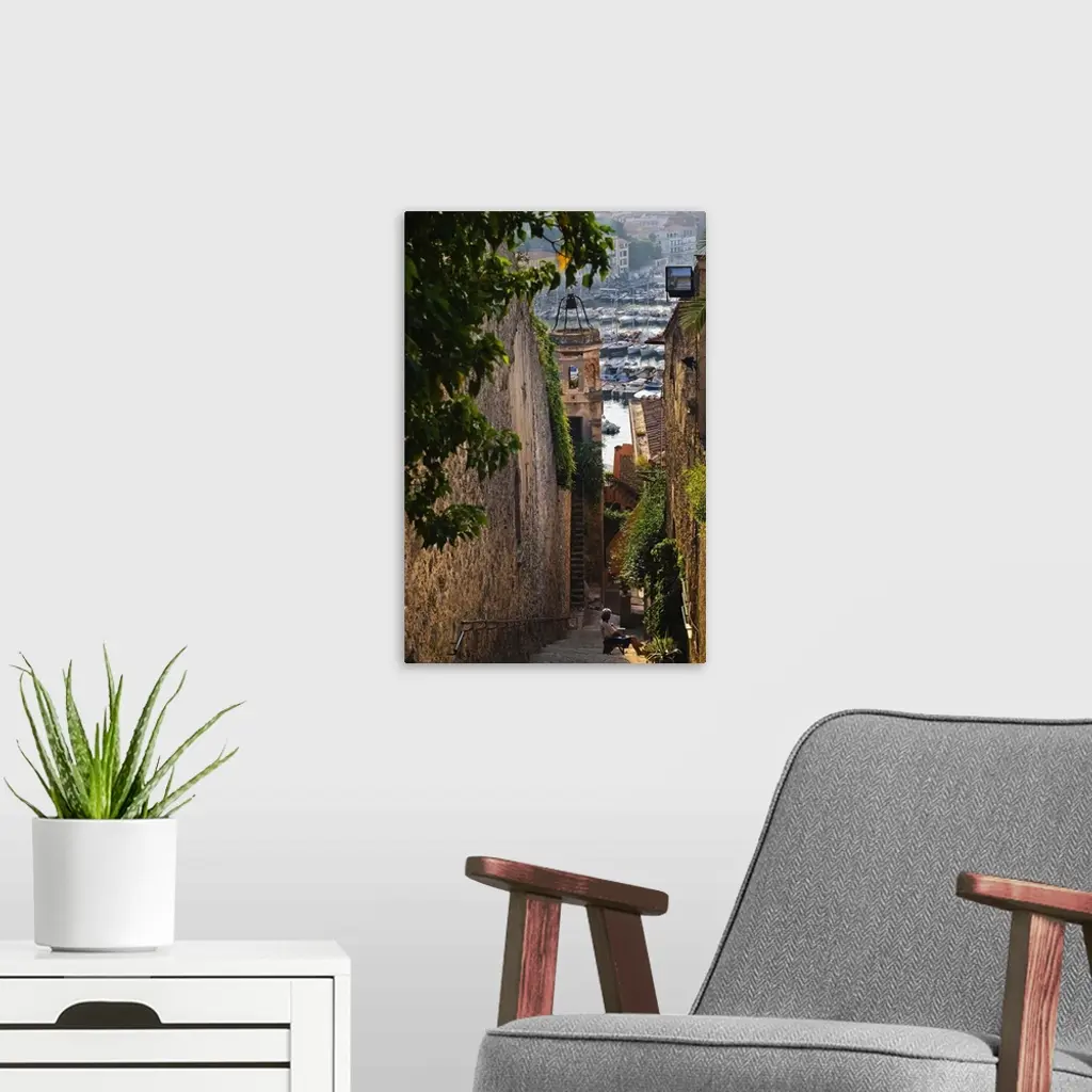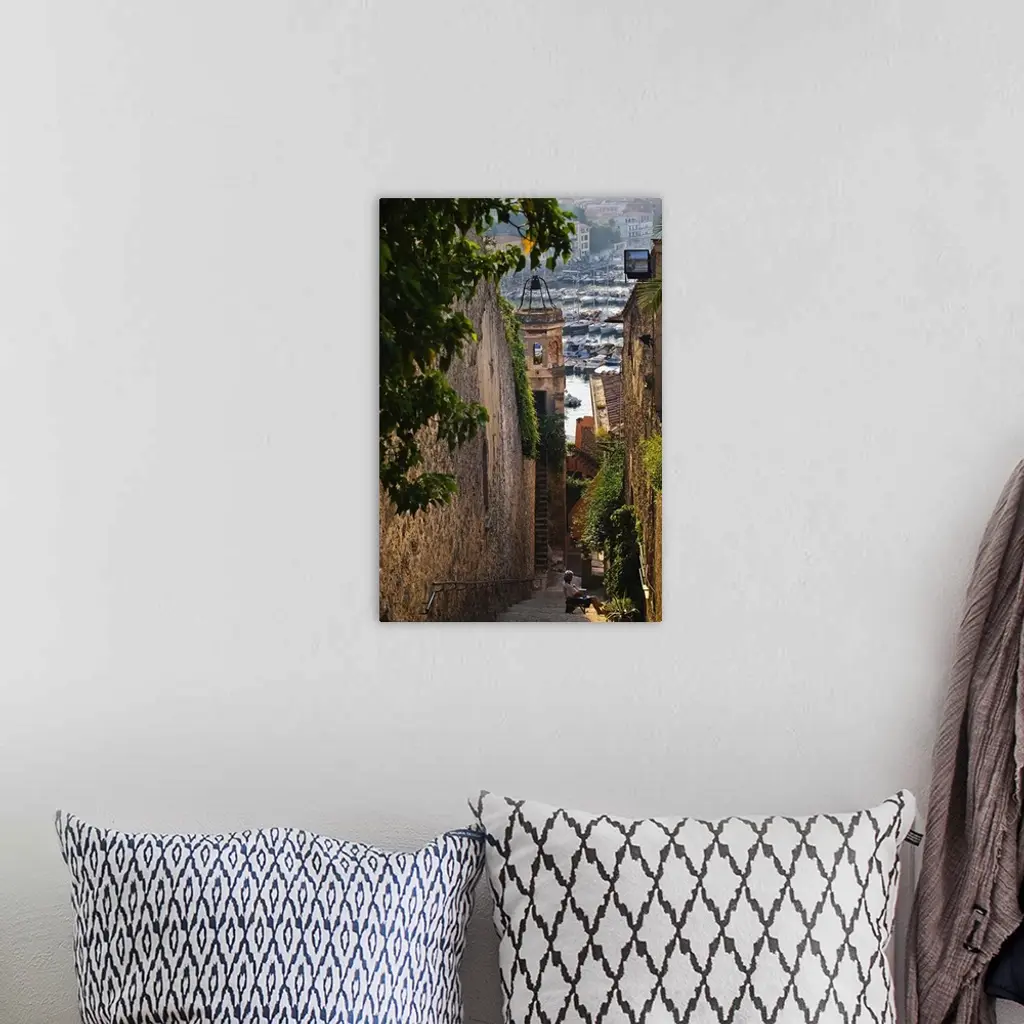 Italy, Tuscany, Maremma, steep footstep leading to the harbour in Porto Ercole wall art for home and office decor. Discover canvas art prints, photos, mural, big canvas art and framed wall art in GreatBigCanvas.com's varied collections.