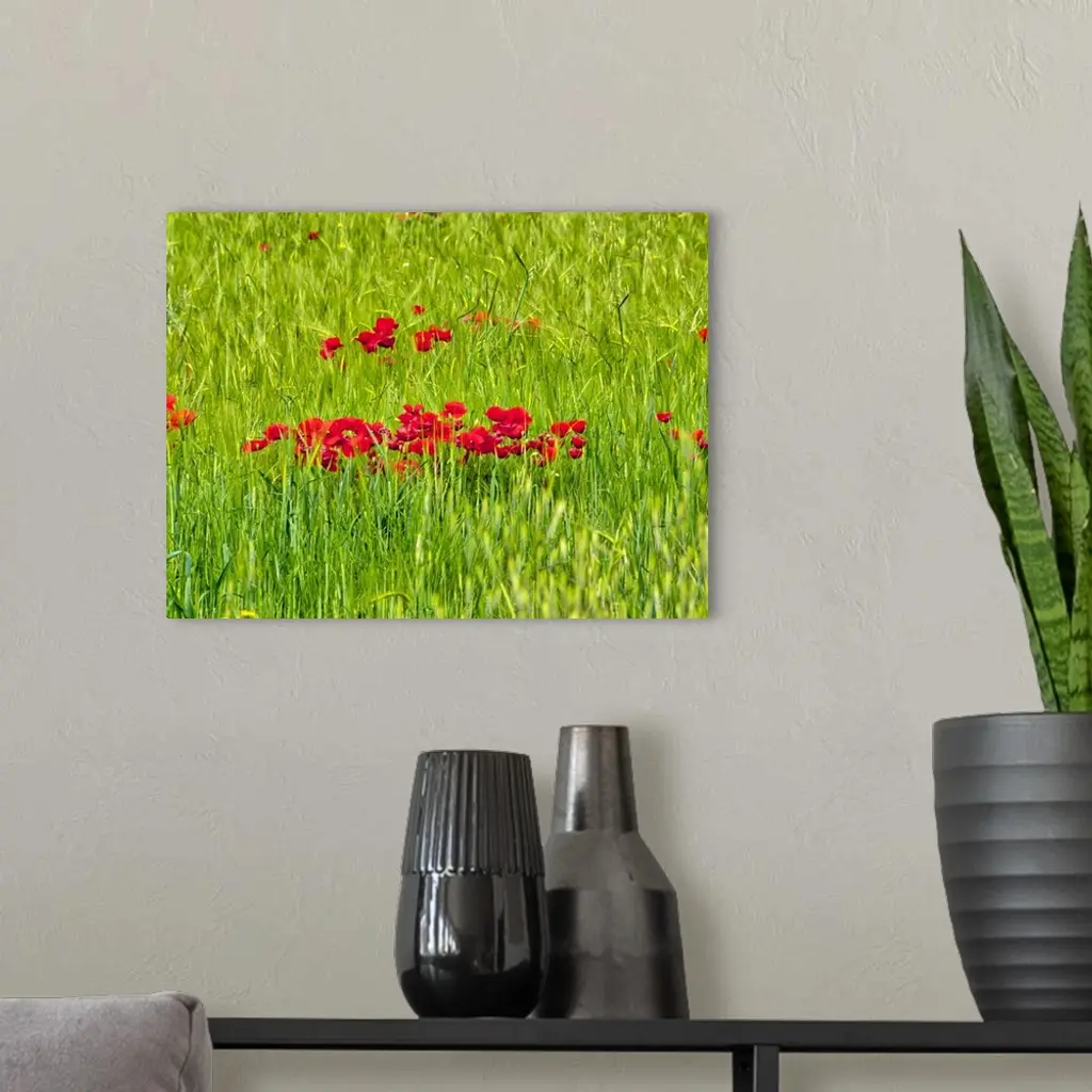 Italy, Umbria, Assisi, Spring Poppies In Wheat Field