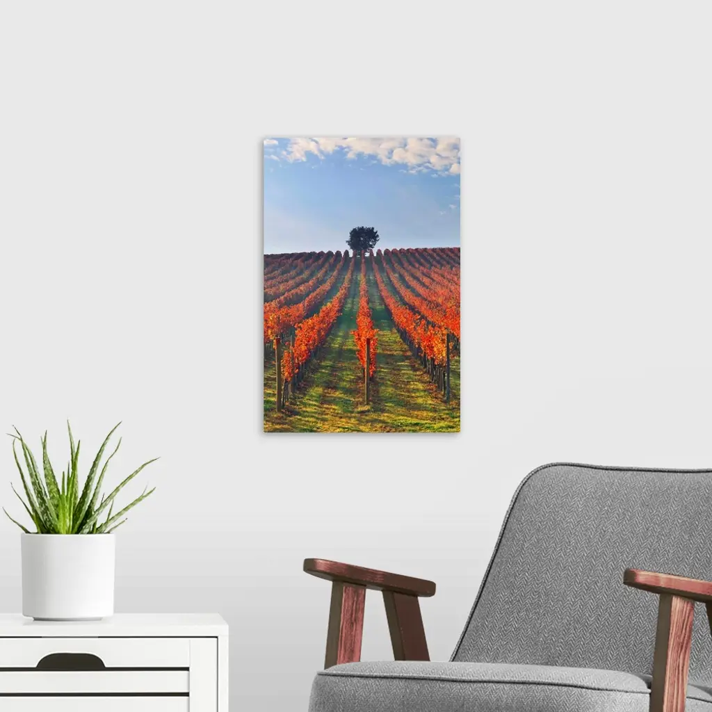 Italy, Umbria, Perugia district. Autumnal Vineyards near Montefalco.
