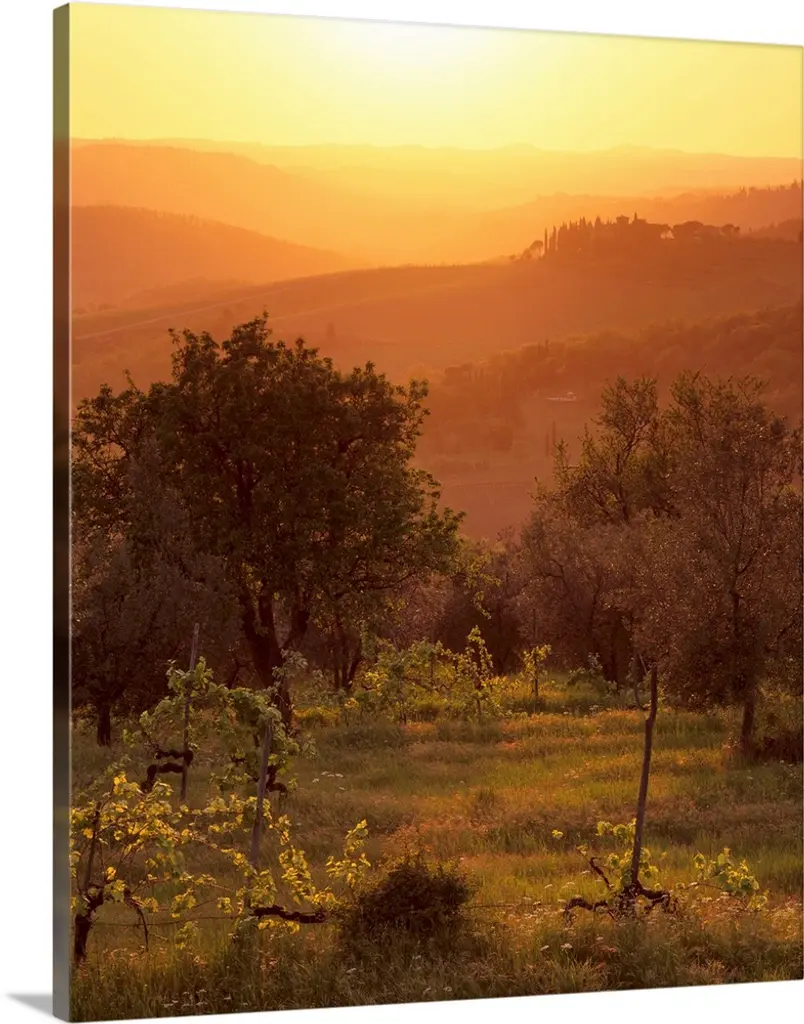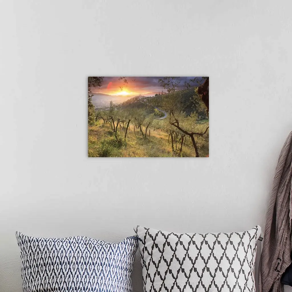 Italy, Umbria, Perugia District, Sunset On The Olive Trees On The Hills Near Trevi