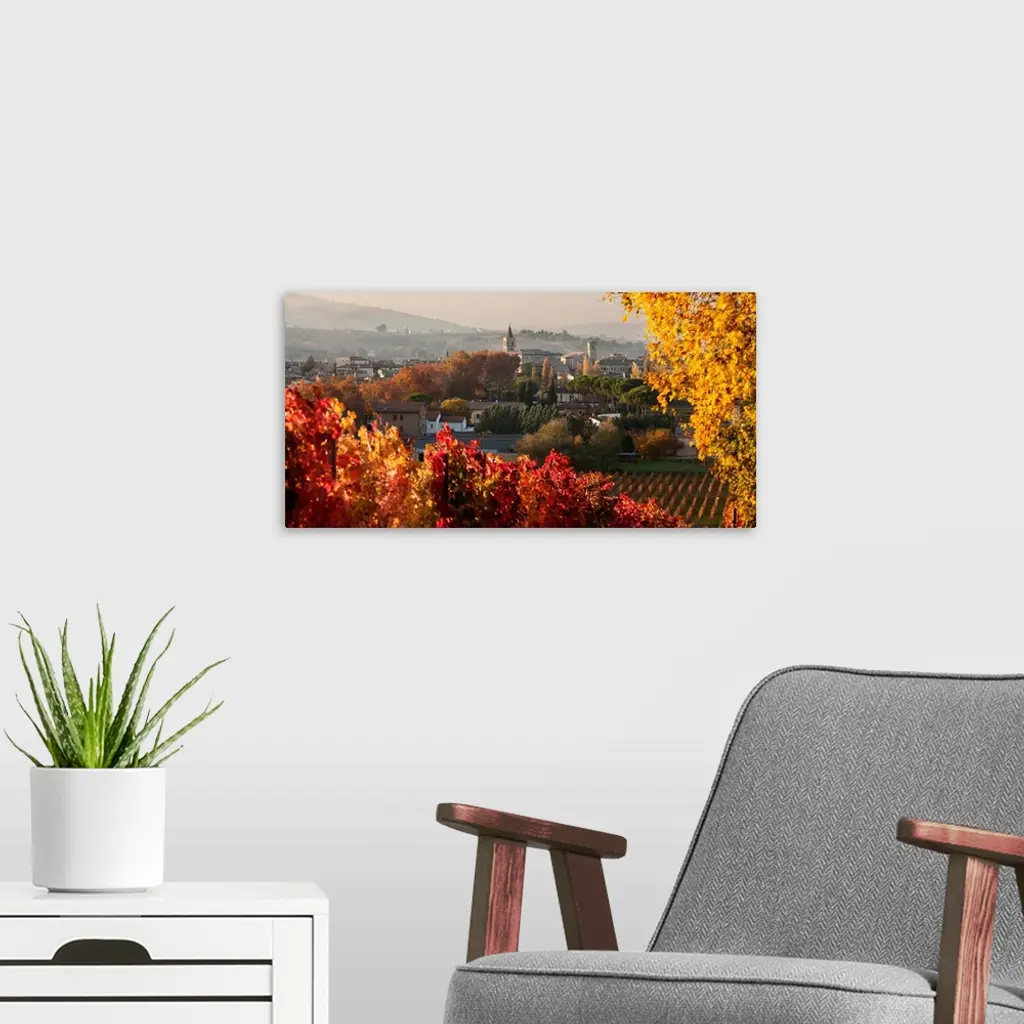 Italy, Umbria, Sagrantino Wine Road, Bevagna, Town And Sagrantino Vineyards