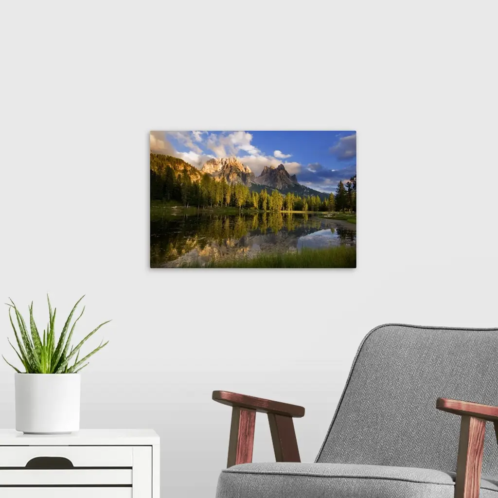 Italy, Veneto, Cadore, Lago dei Cirmoli and Cadini di Misurina mountain wall art for home and office decor. Discover canvas art prints, photos, mural, big canvas art and framed wall art in GreatBigCanvas.com's varied collections.