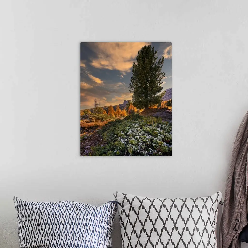 Italy, Veneto, Dolomites, Falzarego Pass, Nuvolau In Autumn