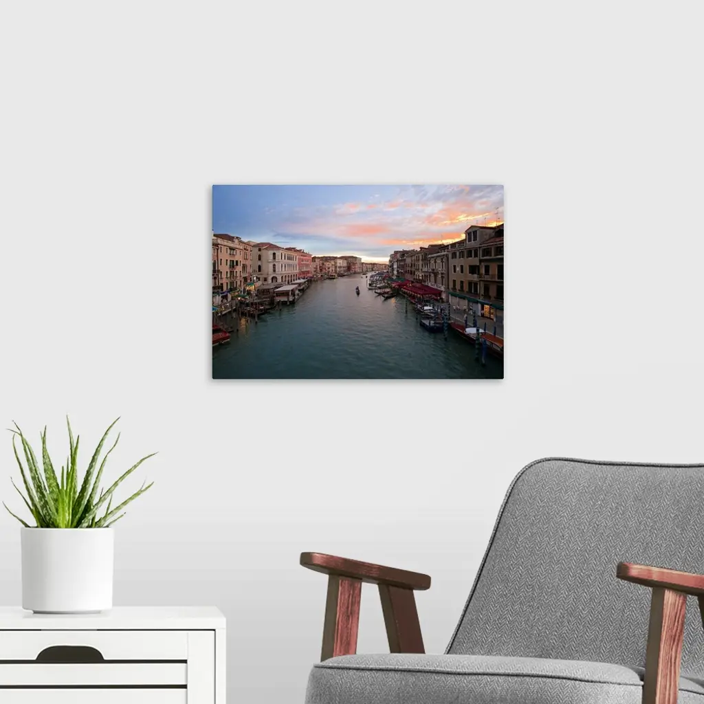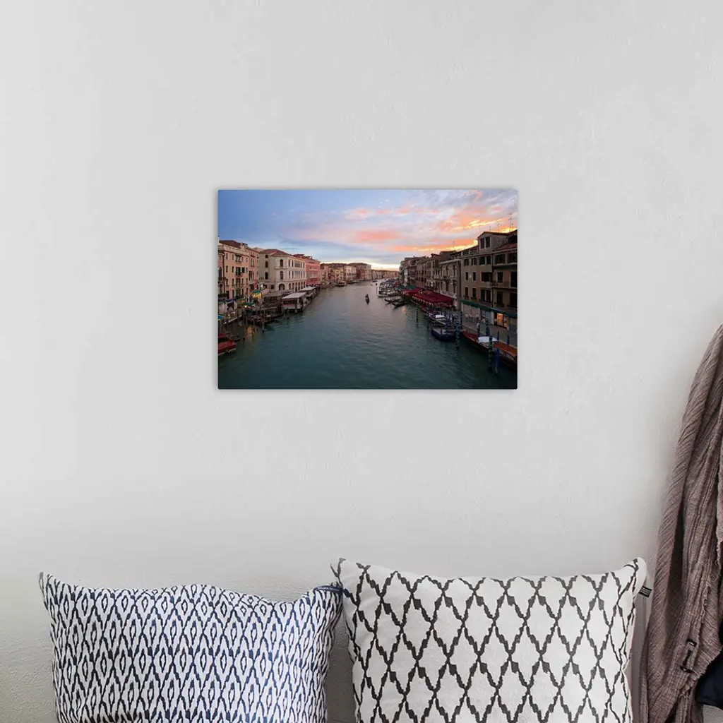 Italy, Veneto, Venice, Grand Canal, View of the sunset from the Rialto Bridge wall art for home and office decor. Discover canvas art prints, photos, mural, big canvas art and framed wall art in GreatBigCanvas.com's varied collections.