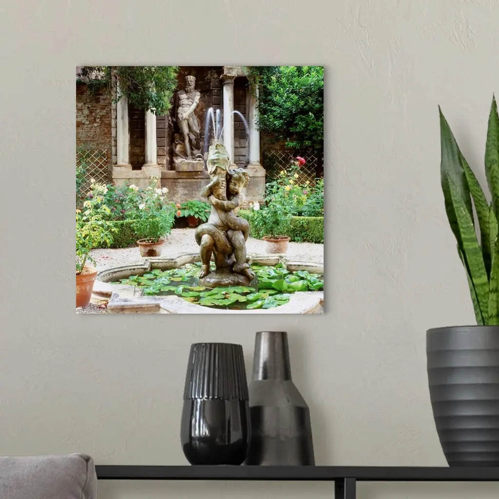 Italy, Veneto, Venice, Malipiero Barnabo palace, fountain wall art for home and office decor. Discover canvas art prints, photos, mural, big canvas art and framed wall art in GreatBigCanvas.com's varied collections.