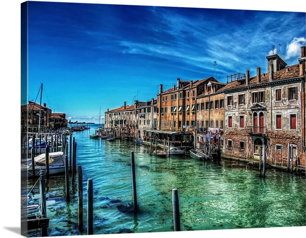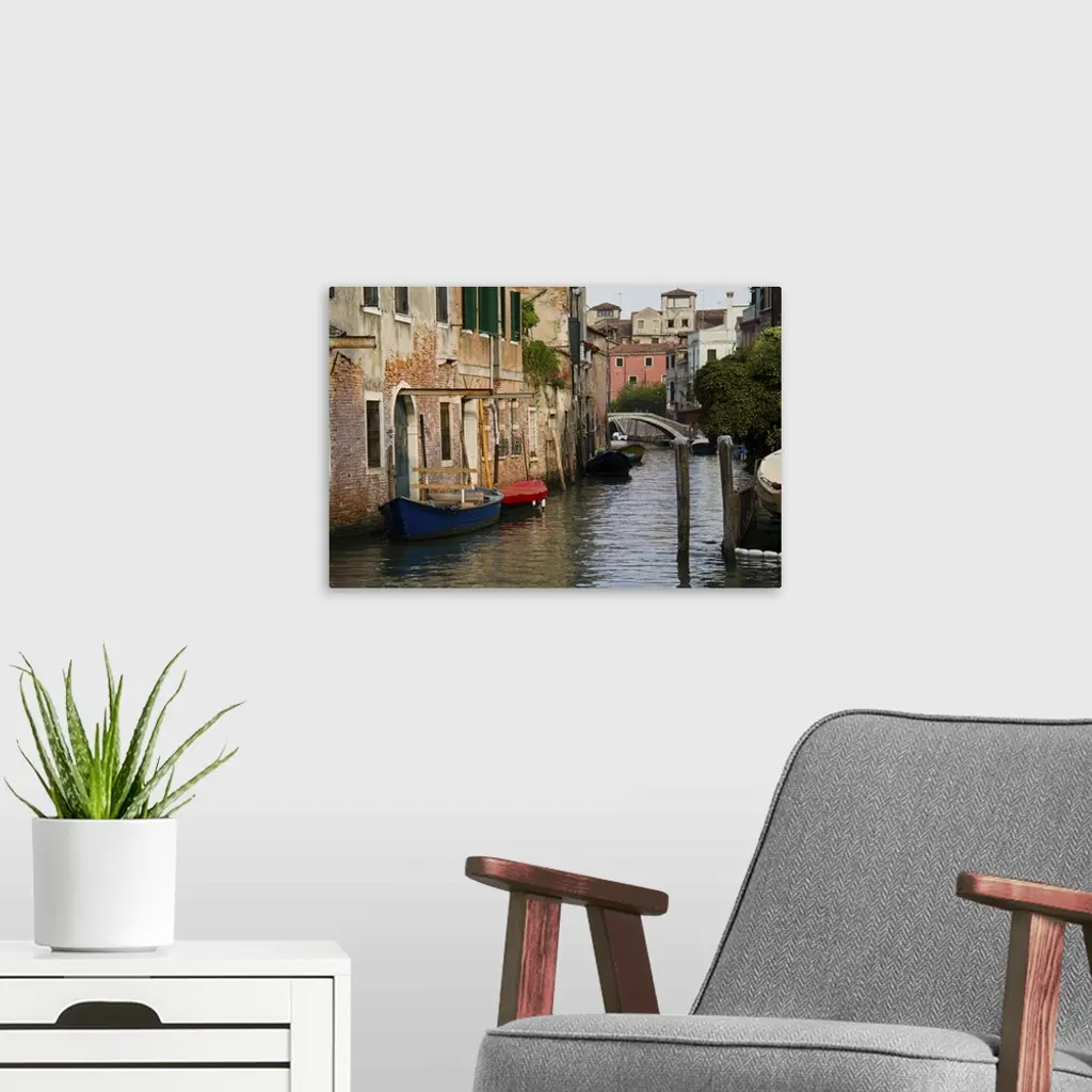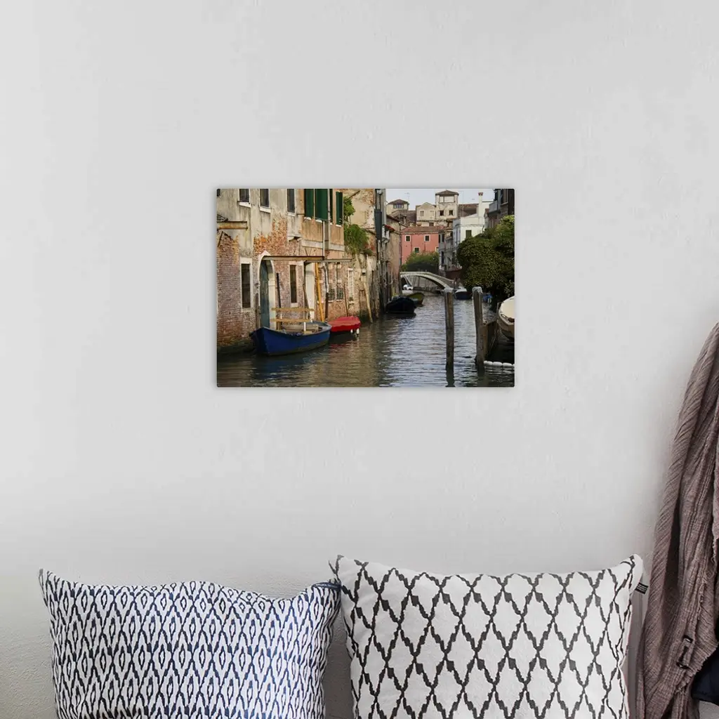 Italy, Venice, Scenic View On Canal With Rowboats