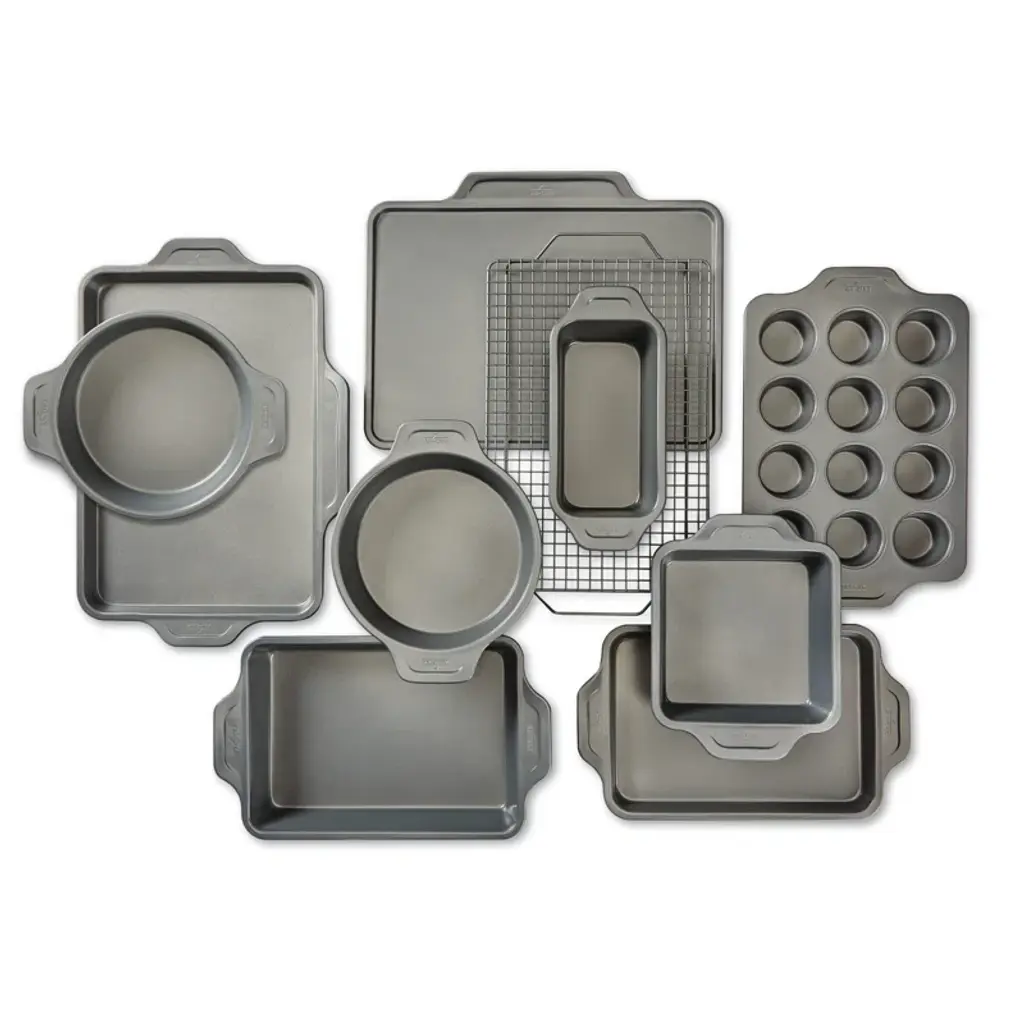Itopfox 10-piece Nonstick Bakeware Set With Cooling Rack, Cookie Sheet, Cake Pans, Loaf Pan, Muffin Pan & Pizza Pan - Grey, Wide Grips