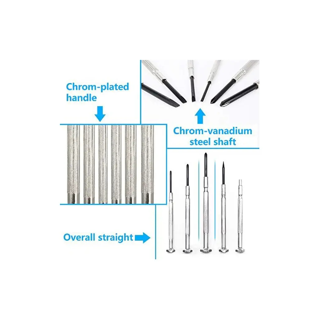 Discover this 11 - piece mini precision screwdriver set, a must - have for anyone into electronics, toys, computer, watch, or jewelry repair. With 11 different sizes and styles, including 00 - Point, 0 - Point, 1 - Point Phillips and flat head screwdrivers in widths of 1.0mm - 3.0mm, along with an awl and a magnetic tool, it covers a wide range of repair needs. The hard - tempered black oxide shafts of the screwdrivers are rust - proof, ensuring long - lasting use. The set comes in a plastic storage case, keeping your tools organized. The end - cap rotary design offers a comfortable grip and flexible rotation, increasing work speed and efficiency. Whether you're fixing a broken watch, repairing a small electronic device, or working on jewelry, this set is the perfect companion for precision tasks, bringing great convenience to your repair work.