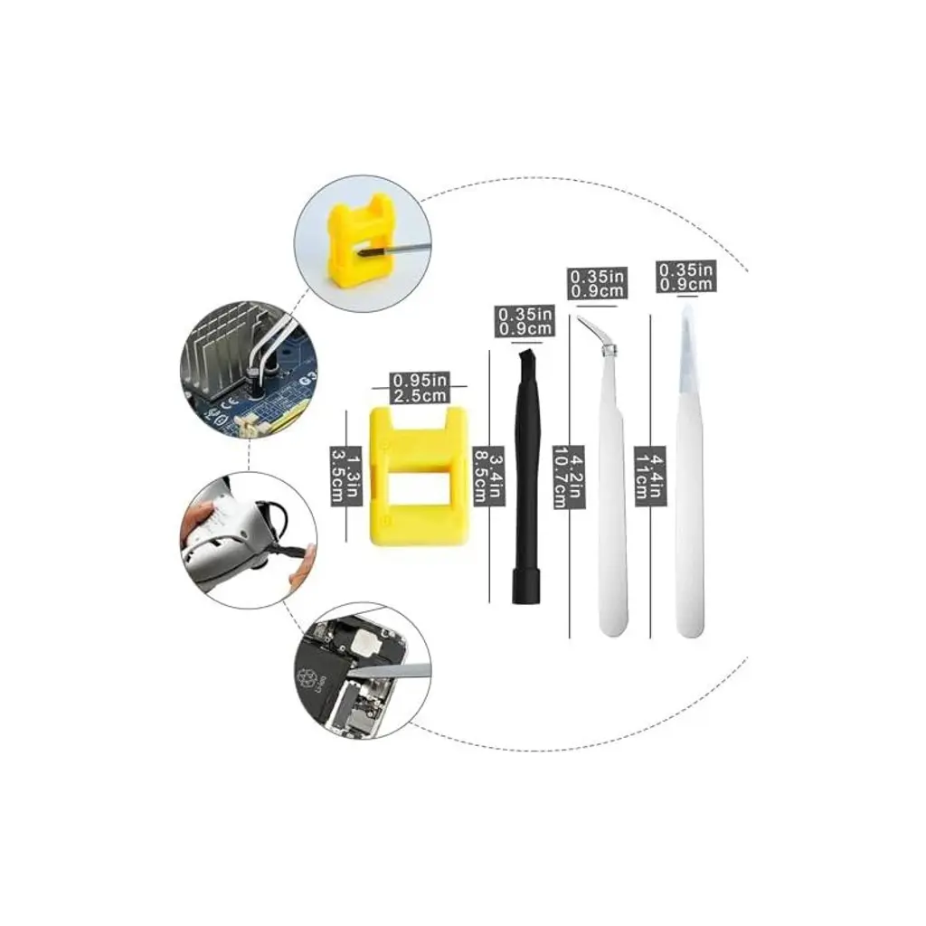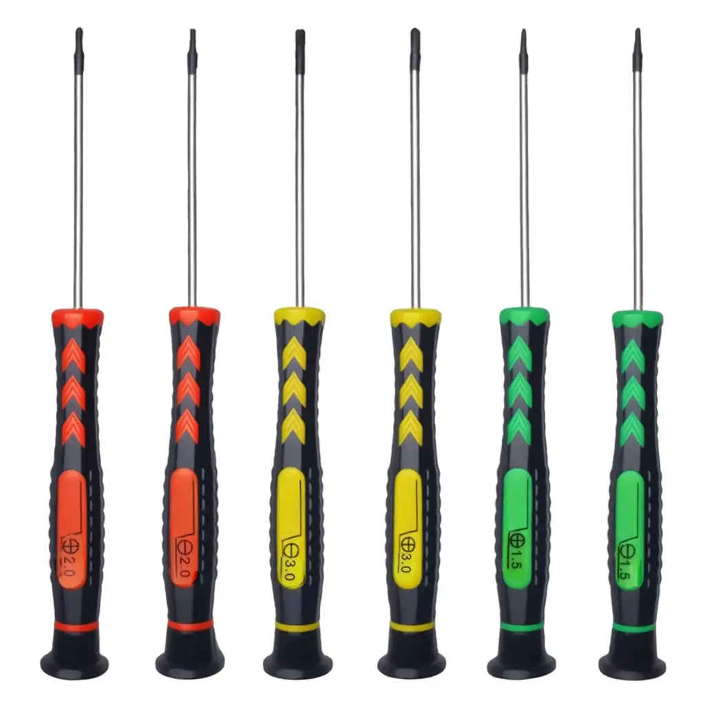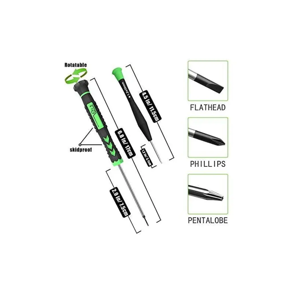 Discover this 12 - piece small screwdriver set, perfect for iPhone, PC, laptop, eyeglass, jewelry, and watch repairs. The set features flathead, Phillips, and Pentalobe screwdrivers in different sizes, along with a helper stick, tweezers, and a magnetizer & demagnetizer tool. Crafted from stainless steel, the screwdrivers are strong and durable, while the non - slip PP+PVC handles ensure a comfortable grip. The magnetic function makes it easy to handle screws, and the blackening treatment prevents rust. The 360°rotating cap saves effort, and the color - coded screwdrivers are easy to identify. Whether you're a professional repairer or a DIY enthusiast, this set is a must - have for all small - scale repair jobs, offering a comprehensive and efficient solution.