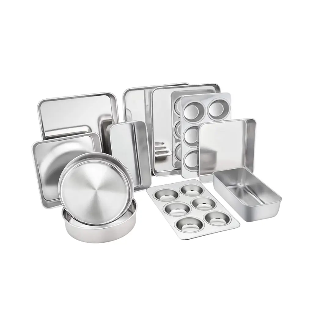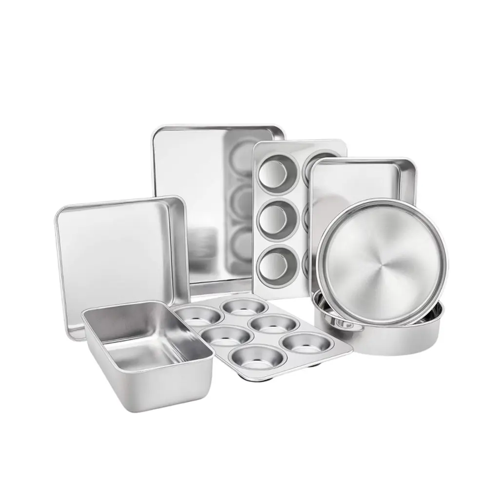 Itopfox 12-piece Stainless Steel Bakeware Set With Lids, Includes Round Cake Pans, Square & Rectangle Baking Pans, Cookie Sheet, Loaf, Muffin, Etc.