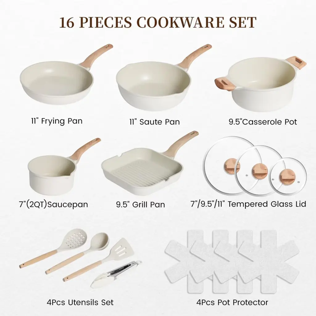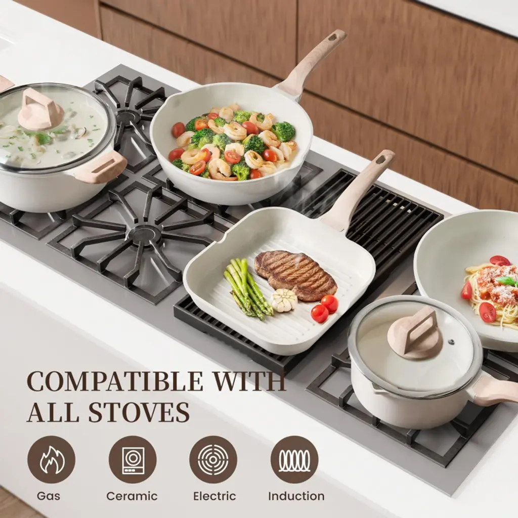 Itopfox 16-piece Nonstick Ceramic Cookware Set With Grill Pan, Saute Pan, And Utensils For Healthy Cooking On All Stovetops