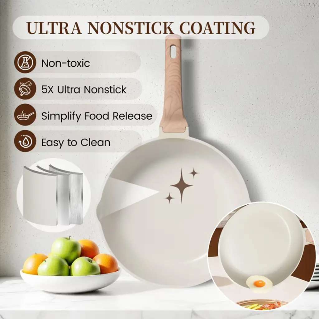 Discover this 16 - piece cookware set that's a game - changer in the kitchen. With a saucepan, casserole pot, frying and sauté pans, grill pan, glass lids, utensils, and pan protectors, it caters to every cooking style. The premium non - stick coating not only enables healthy, low - fat cooking but also makes cleanup a breeze. Compatible with all stoves, it offers great versatility. The ergonomic stay - cool handles ensure safety while handling. The aluminum body distributes heat evenly, giving you precise control over your cooking. Whether you're making a slow - cooked milk, sautéing vegetables, or grilling steaks, this set is your go - to for delicious and hassle - free cooking.