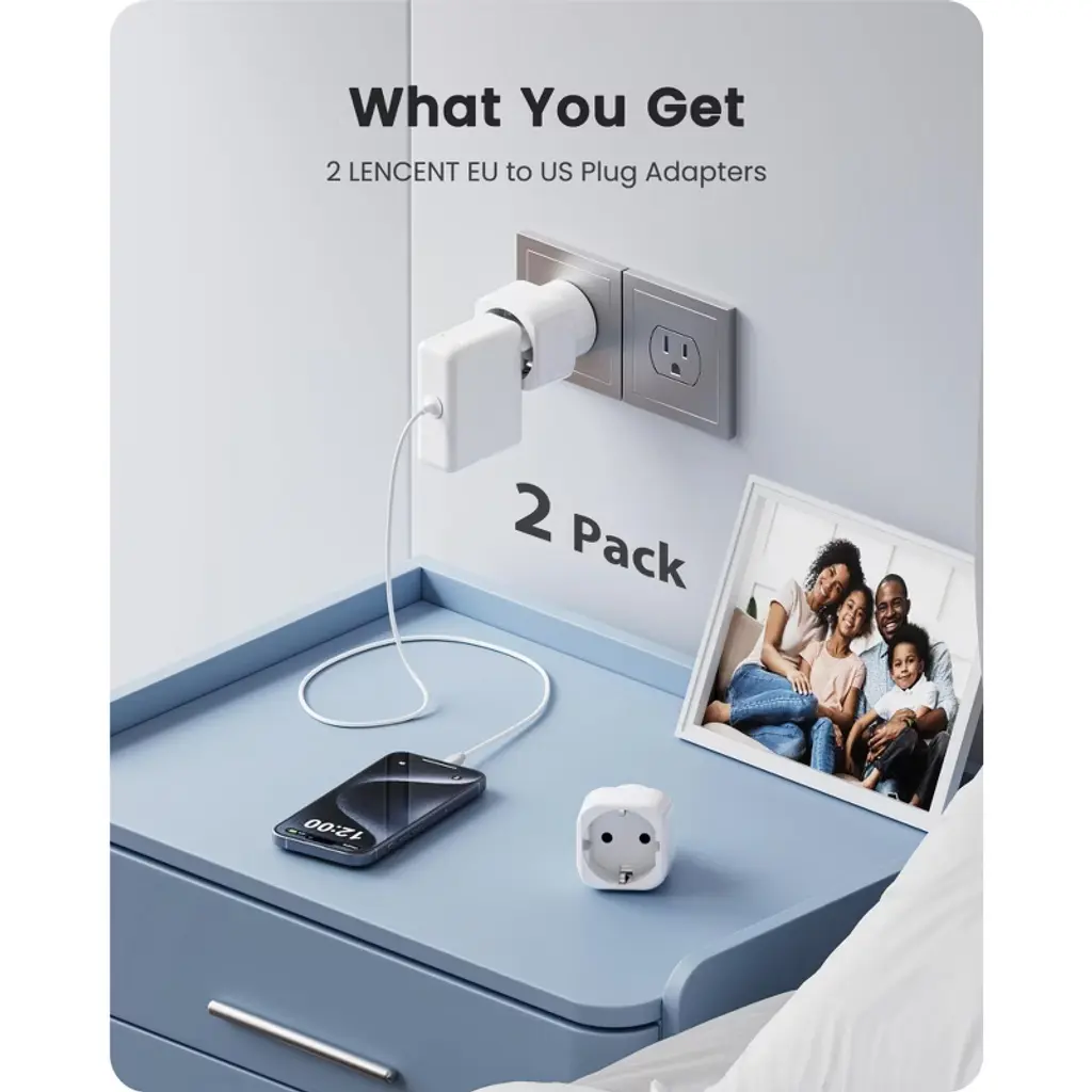 Looking for a reliable way to use your European electronics in the US? Our plug adapter is the perfect solution. It can convert European 2 - round - pin plugs to US flat - pin plugs, compatible with a wide range of devices such as smartphones, laptops, shavers, and more. With a rated power of 15A, 1650W at 110V, it can connect Type C/E/F plugs from multiple European countries to American wall outlets. The compact design makes it easy to use, simply plug it between the wall outlet and your device. It hardly protrudes from the wall, saving space. Plus, it offers 360° protection with child - safety shutters and grounding design, safeguarding you and your devices. Remember, it's a plug converter, so check your device's voltage support (110V - 240V) before use. You'll receive 2 packs of adapters and a user manual, making it a great choice for travelers or those hosting foreign guests.