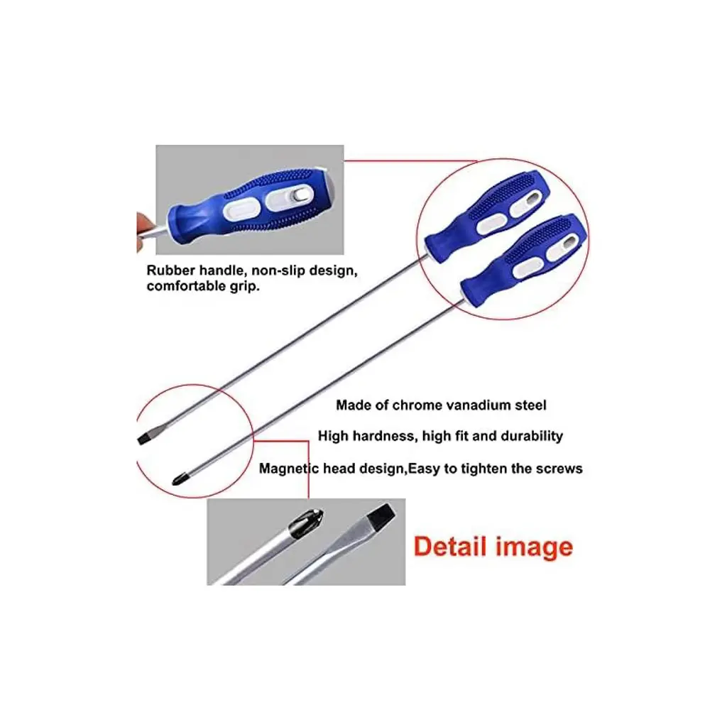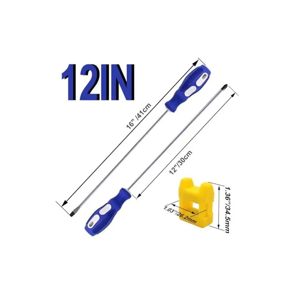 Itopfox 2-piece Long Screwdriver Set With Magnetic Tips, Slotted & Phillips Head, Rubber Grip Handle For Secure And Comfortable Use