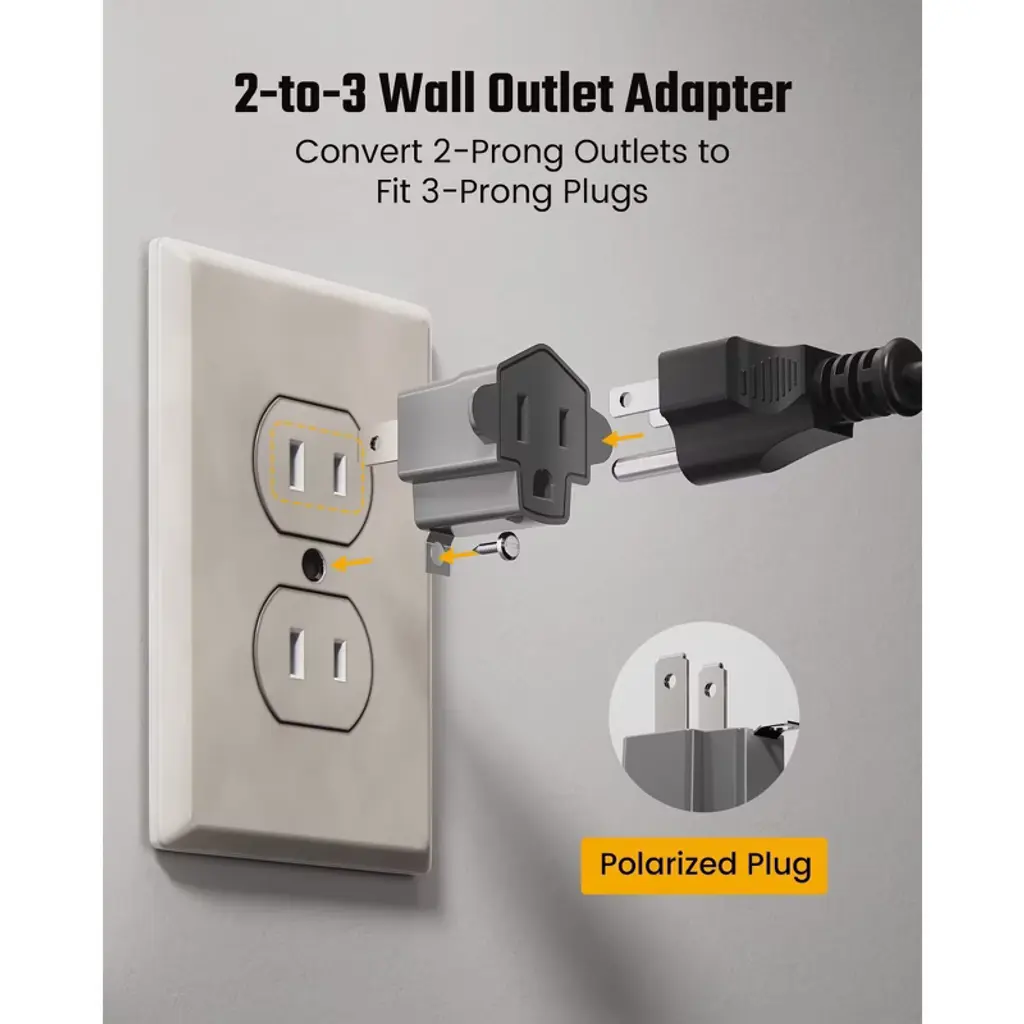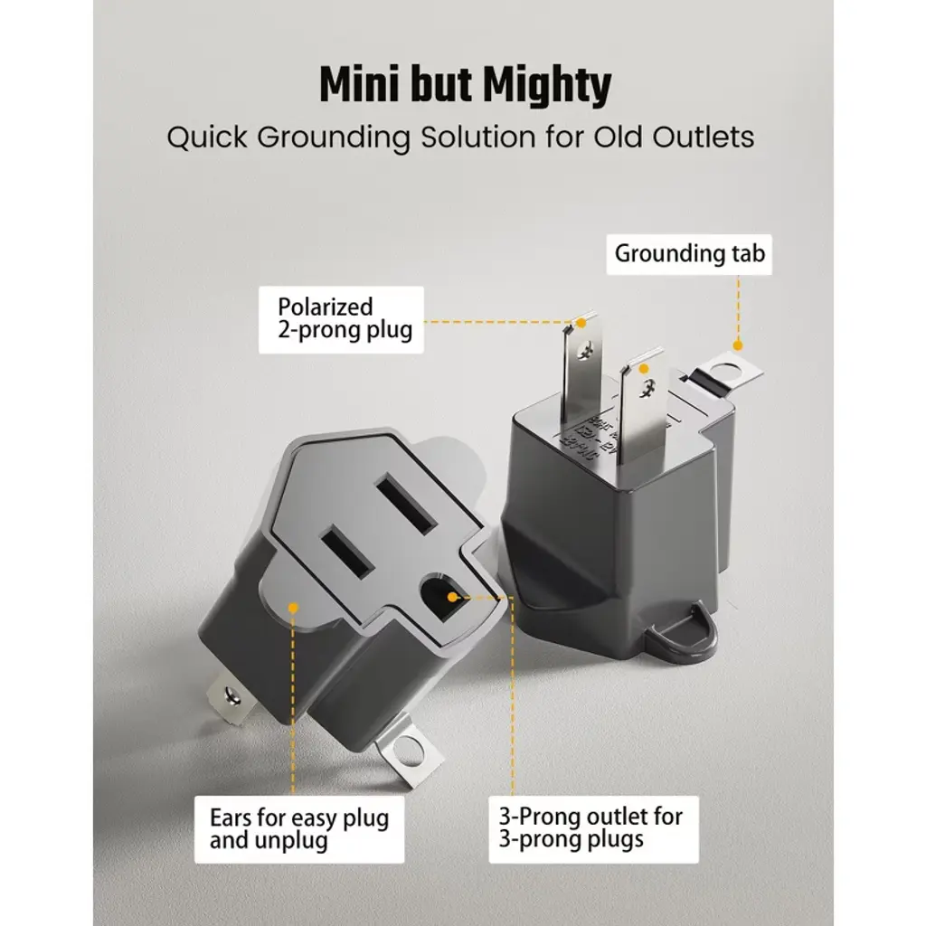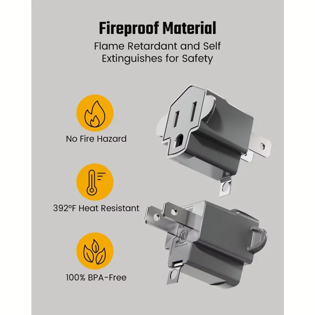 Looking for a reliable solution to convert your 2 - prong outlets to 3 - prong? Our 2 Prong to 3 Prong Outlet Adapter is the answer. It's ETL - listed and crafted from fire - retardant PBT material, rated at 125V/15A with a max load of 1875W and can resist temperatures up to 392°F. This adapter is perfect for older homes, offices, or industrial settings. Its polarized plug ensures safer connections by aligning hot and neutral wires correctly. Weighing just 0.6 oz, it's compact and portable, ideal for travel, especially to countries like Japan. With a built - in grounding tab, it offers an extra layer of safety when the 2 - prong outlet is grounded. Whether you need to use modern electronics in an old building or take your 3 - prong devices abroad, this adapter provides a convenient and secure solution.