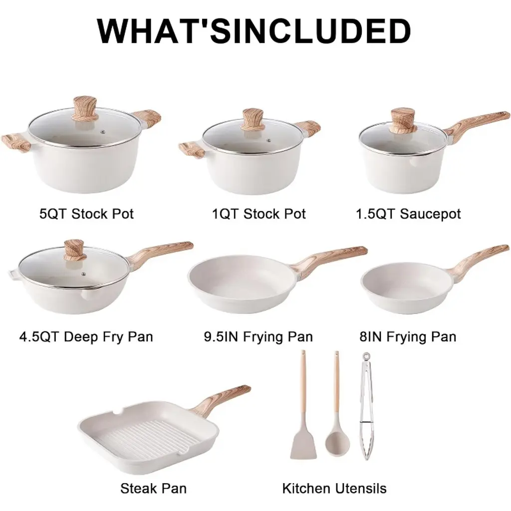 Itopfox 20-piece Nonstick Cookware Set, Granite Induction Pots And Pans, Kitchen Cooking Set With Grill Pan, Pfos Pfoa Free, Grayish White