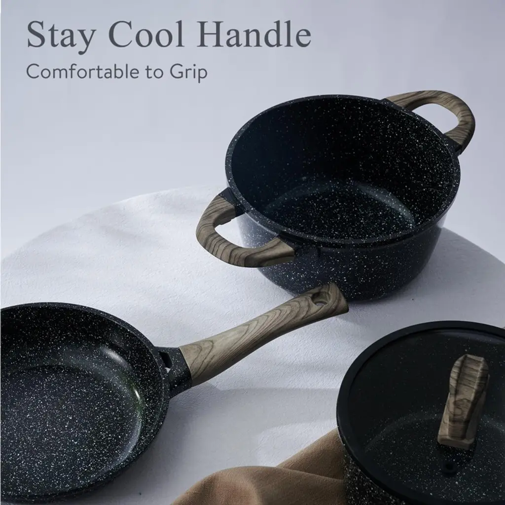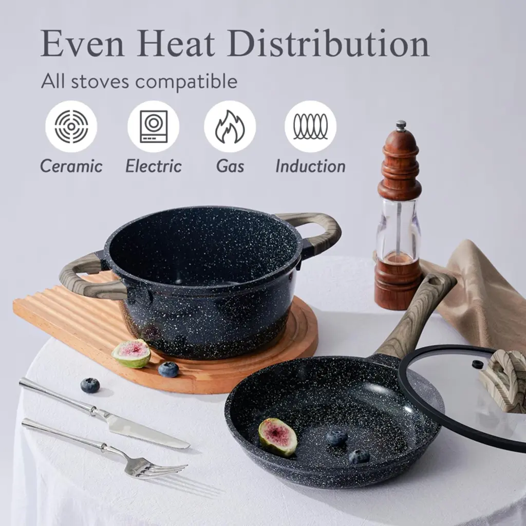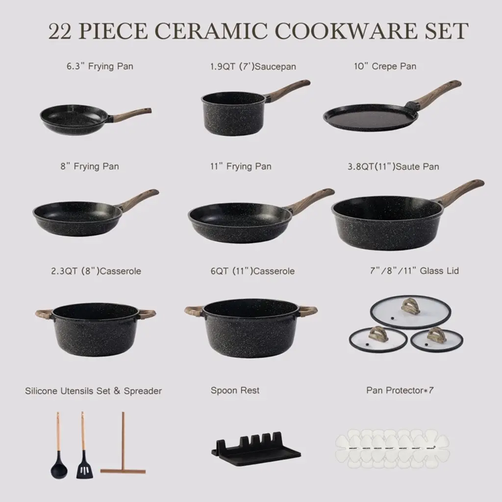 Itopfox 22-piece Ceramic Nonstick Cookware Set With Glass Lids & Utensils, Induction Ready, Pfos/pfoa-free, Black Granite